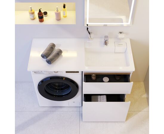 Долгожданное расширение в мебели X-Joy. Самое оптимальное и функциональное решение для организации пространства ванной комнаты с учетом размещения в ней стиральной машины. Подходит для интеграции с узкими стиральными машинами (глубиной от 32 до 45 см).