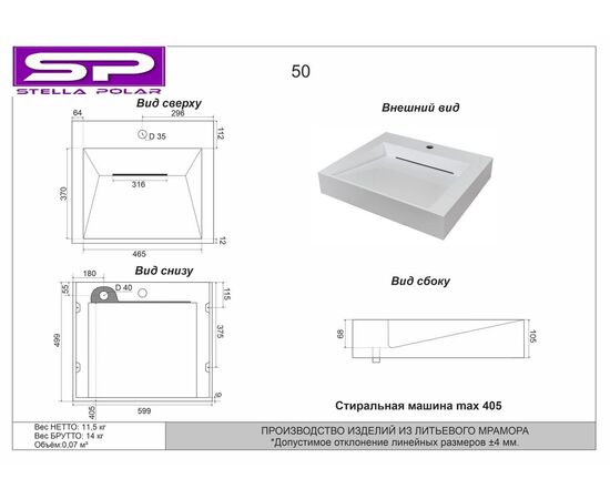 БрендStella Polar Ширина, см60 Глубина, см50 Высота, см10.5 Материал раковиныИскусственный мрамор СтранаРоссия Гарантия2 года