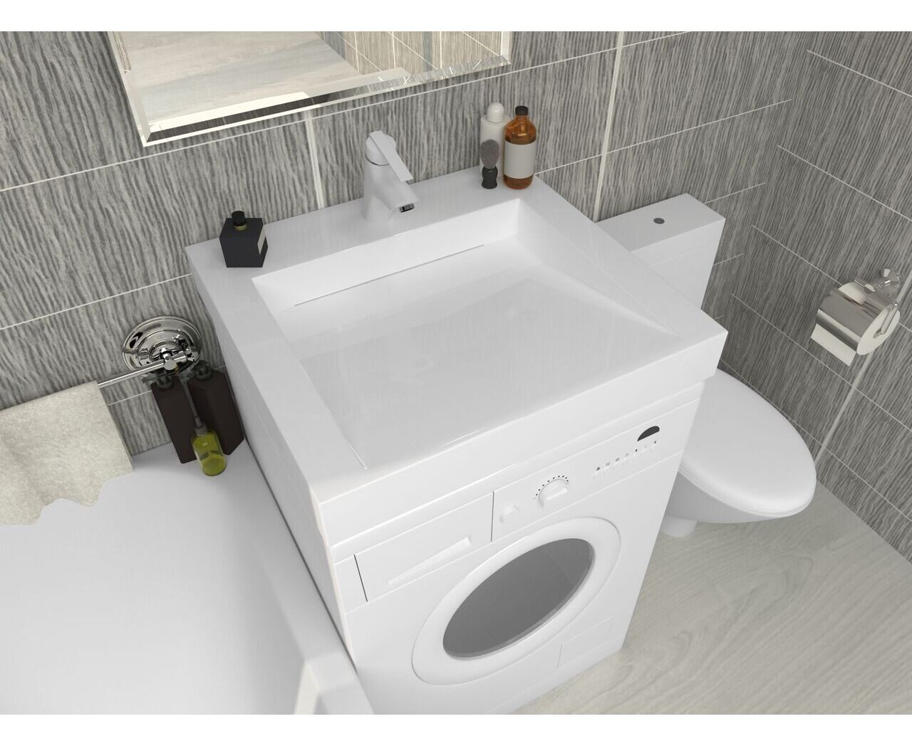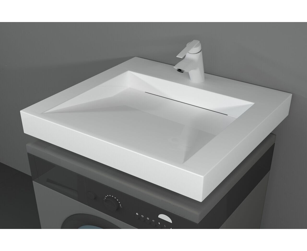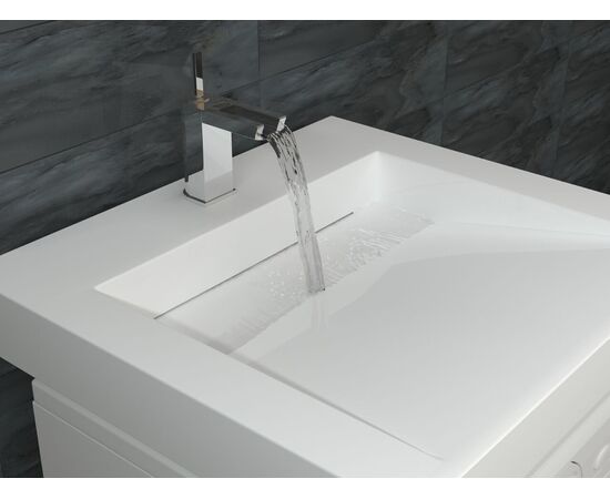 Ультрасовременная раковина в ванную комнату для установки над стиральной машинкой с щелевым сливом. Крепится на кронштейны, которые входят в комплект поставки. Верхний слой высококачественного гелькоута образует декоративно-защитное покрытие.