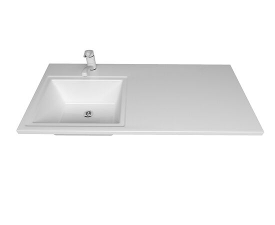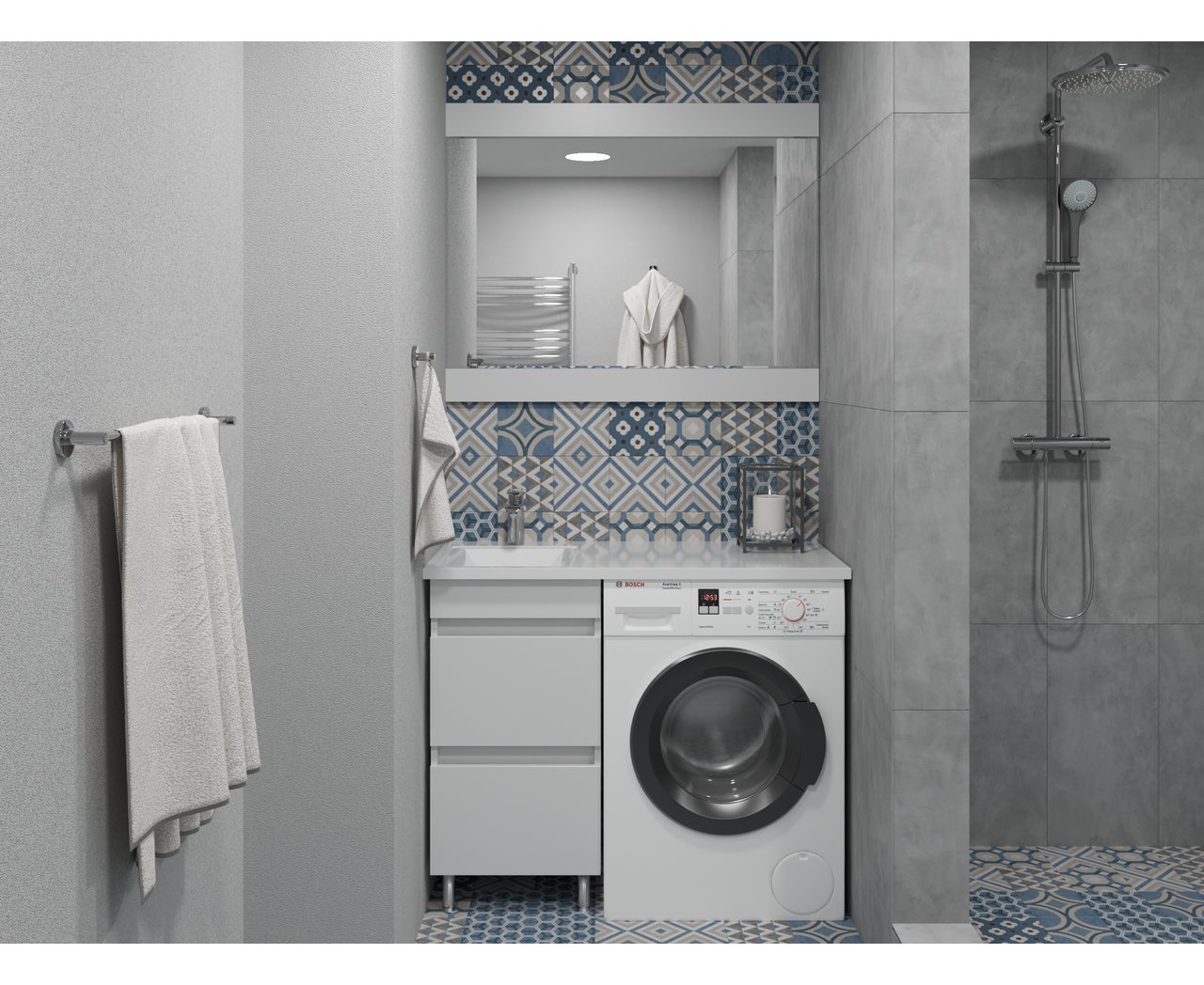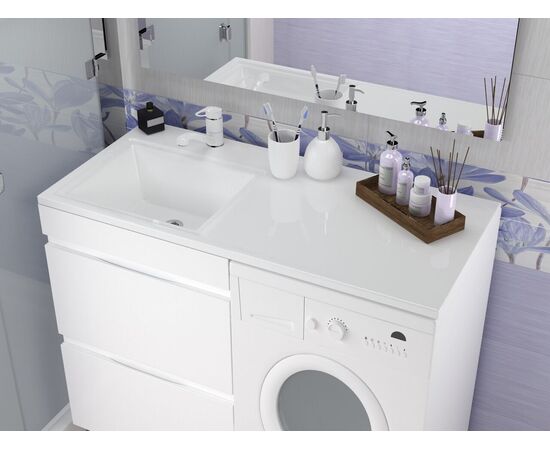 Раковина для ванной комнаты для установки над стиральной машинкой. Верхний слой Гелькоута формирует декоративно защитное покрытие. Раковина крепится на кронштейны. Может эксплуатироваться как самостоятельное изделие, так и со встроенной мебелью.