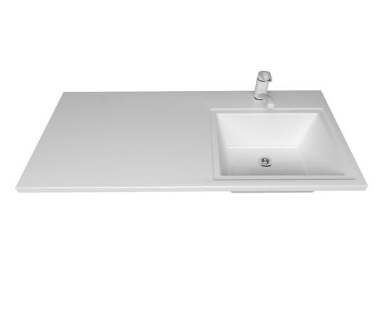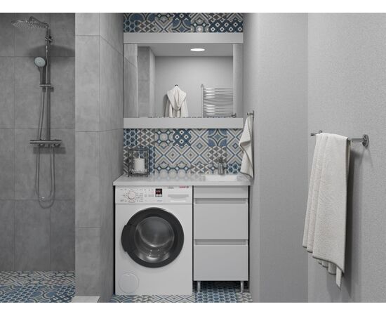 Раковина для ванной комнаты для установки над стиральной машинкой. Верхний слой Гелькоута формирует декоративно защитное покрытие. Раковина крепится на кронштейны. Может эксплуатироваться как самостоятельное изделие, так и со встроенной мебелью.