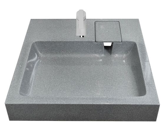 Раковина в ванную комнату для установки над стиральной машинкой благородного серого цвета. Крепится на кронштейны, которые входят в комплект поставки. Верхний слой высококачественного гелькоута образует декоративно-защитное покрытие.