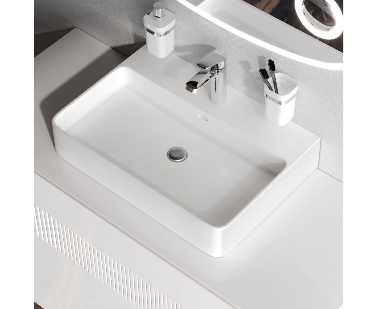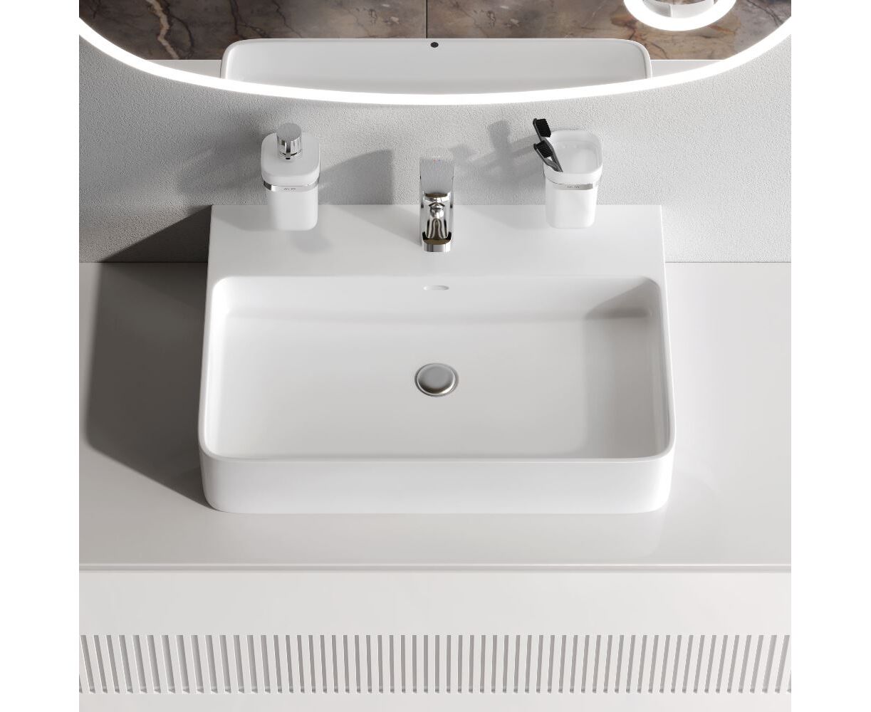 Тщательно продуманная форма и увеличенный объем чаши исключают пролив воды за край сохраняя чистоту столешницы и сокращая время на уборку. А встроенный пьедестал освободит еще больше места для хранения всех необходимых аксессуаров.