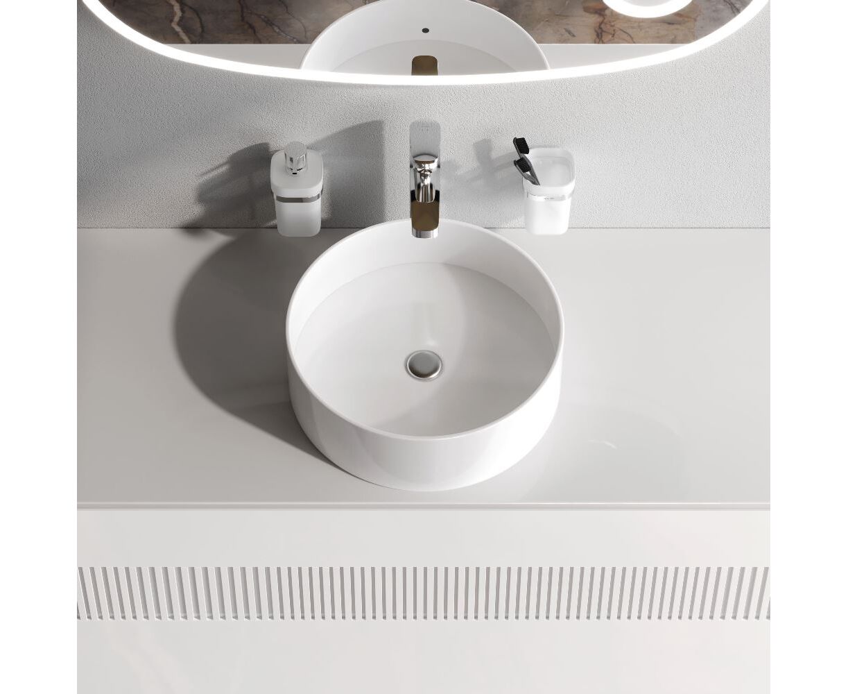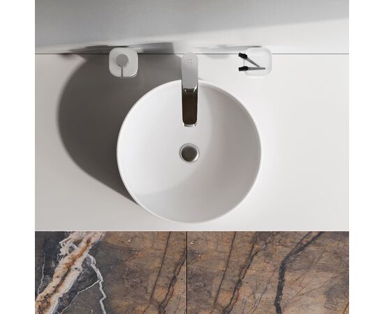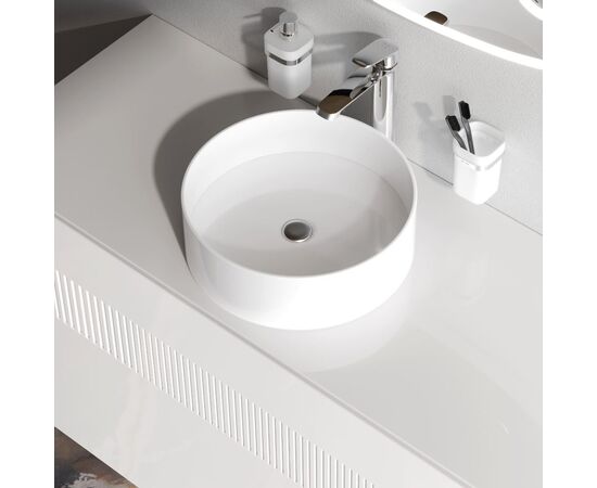 Размер раковины составляет всего 40 см благодаря чему она может органично вписаться даже в ванную комнату с ограниченной площадью. Тщательно продуманная форма чаши исключает пролив воды за край сохраняя чистоту столешницы и сокращая время на уборку.