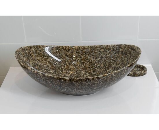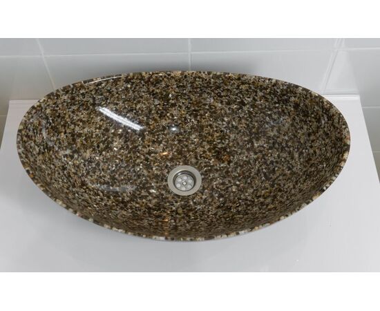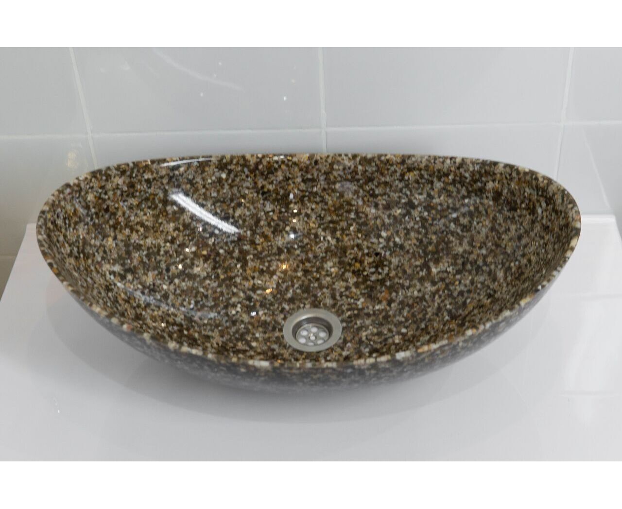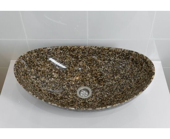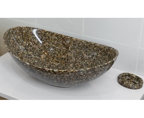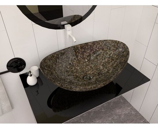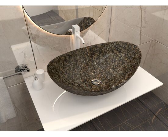 Раковина накладная для ванной комнаты Орион может размещаться на мебели или на столешнице. Верхний глянцевый слой гелькоута образует красивое декоративное и защитное покрытие. Цвет этой раковины выглядит очень роскошно - коричневый камень с "золотыми" вкраплениями. Раковина изготавливается полностью вручную, процесс производства очень трудоемок, но полученный эффект того стоит!. Тонкие борта, роскошь и изящество этой раковины просто великолепны!