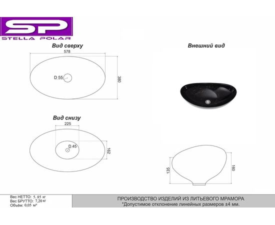 Характеристики Раковина накладная Stella Polar Орион золотой мрамор