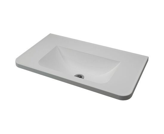 Раковина для ванной комнаты с плавным изгибом на передних углах и дополнительным пространством по бокам раковины для предметов с целью умывания. Верхний глянцевый слой гелькоута образует красивое декоративное и защитное покрытие.