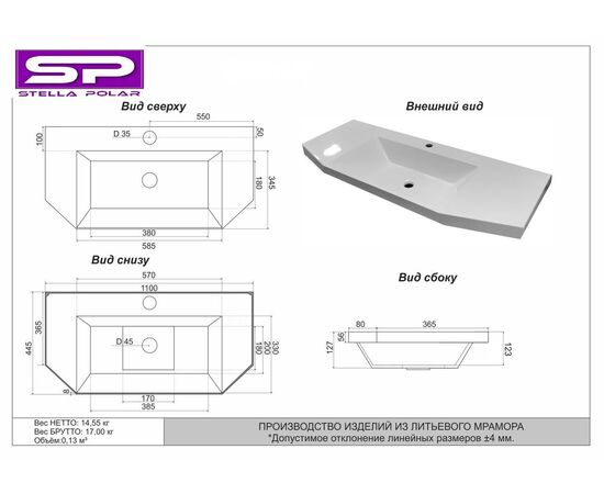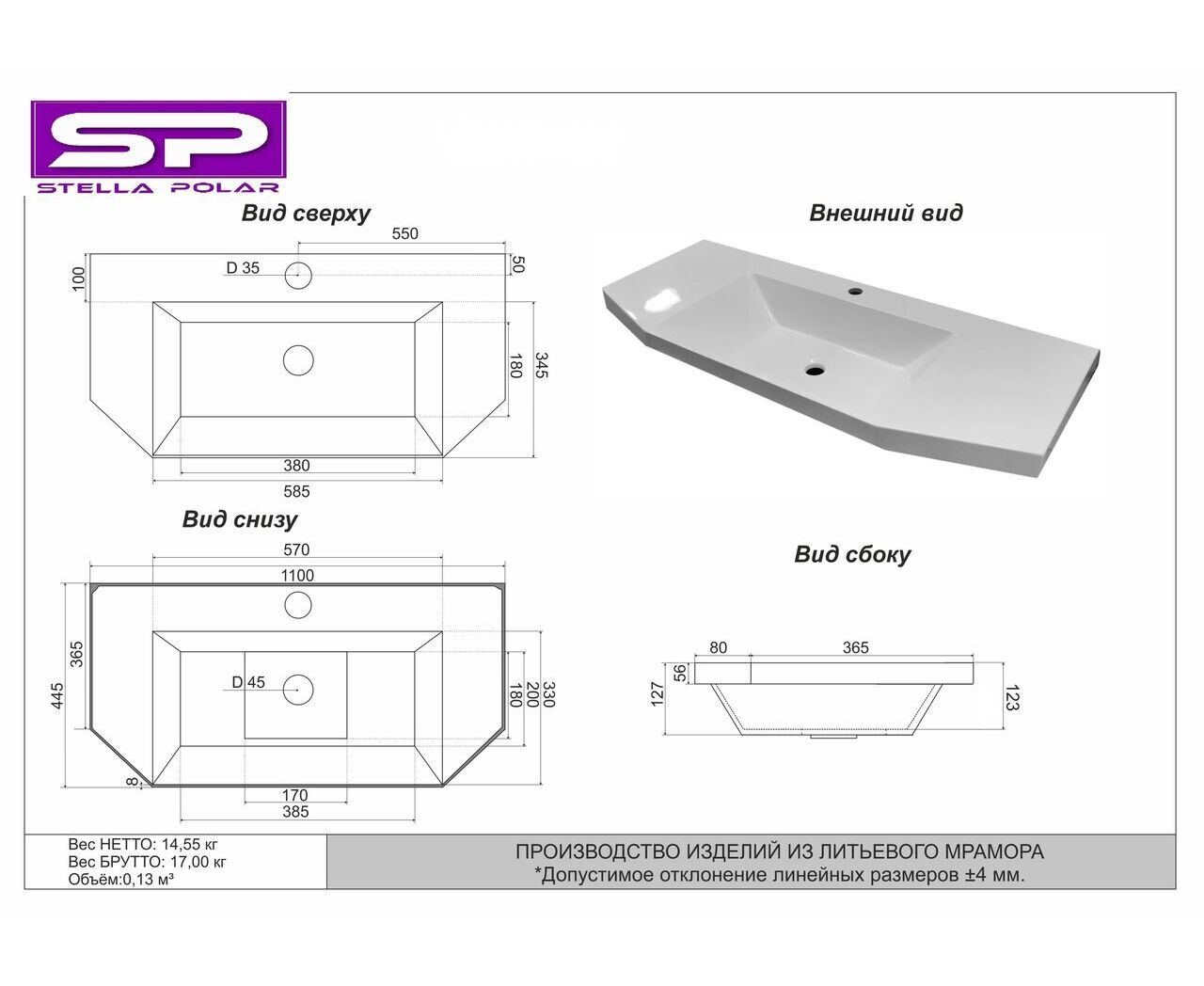 БрендStella Polar Ширина, см110 Глубина, см44.5 Высота, см12.7 Материал раковиныИскусственный мрамор СтранаРоссия Гарантия2 года