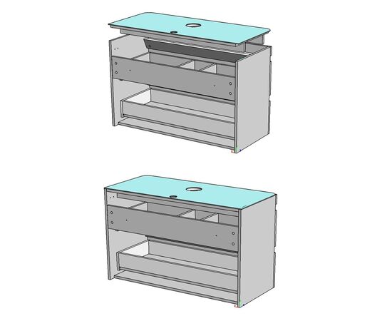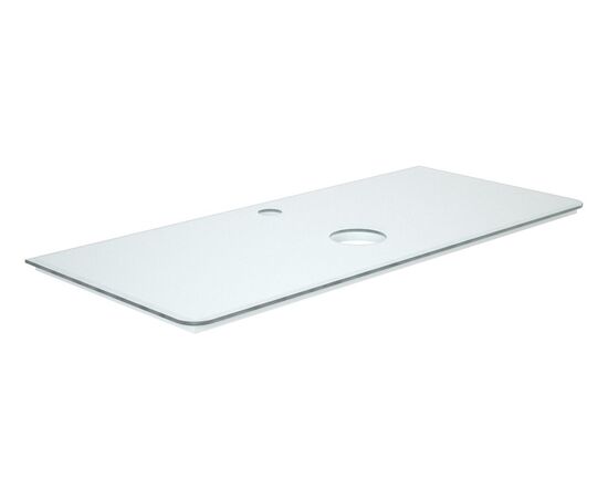 Сверху стеклянная столешница из закаленного стекла 4 мм, окрашенная в белую эмаль. Снизу столешница из МДФ пленки; пленка направлена вниз