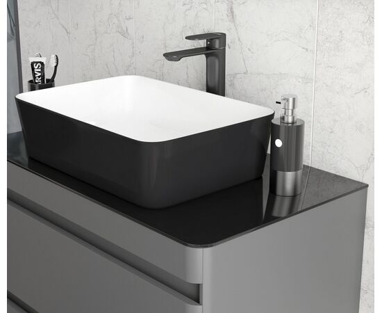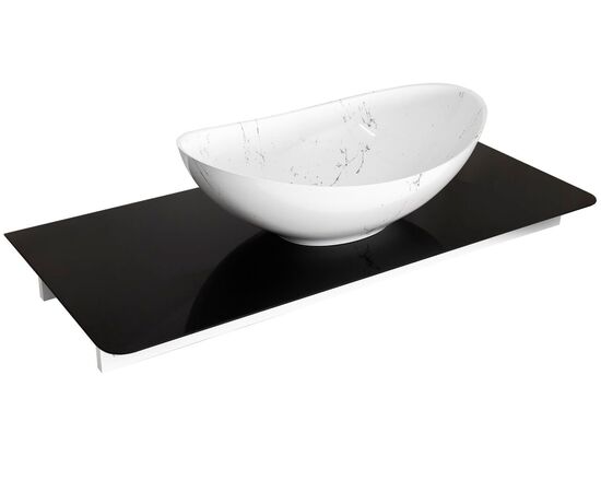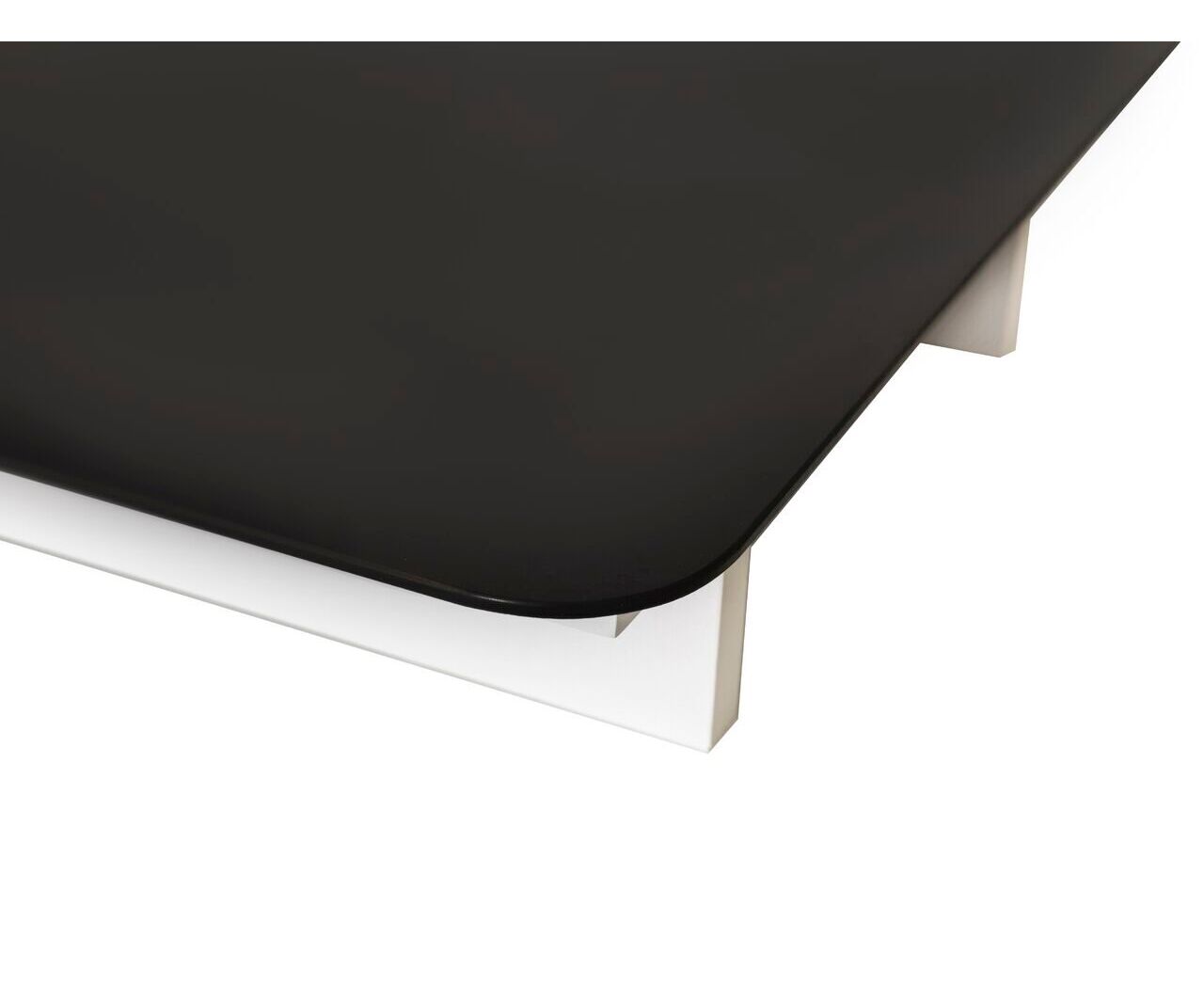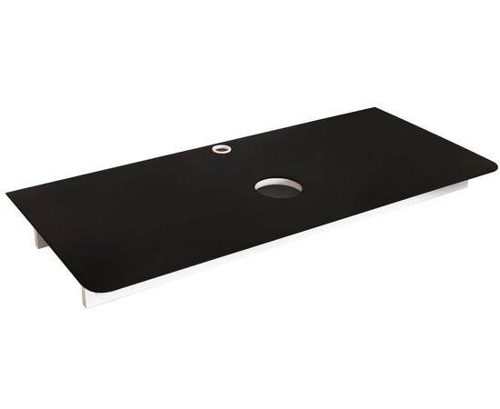 Сверху стеклянная столешница из закаленного стекла 4 мм, окрашенная в черную эмаль. Снизу столешница из МДФ пленки; пленка направлена вниз