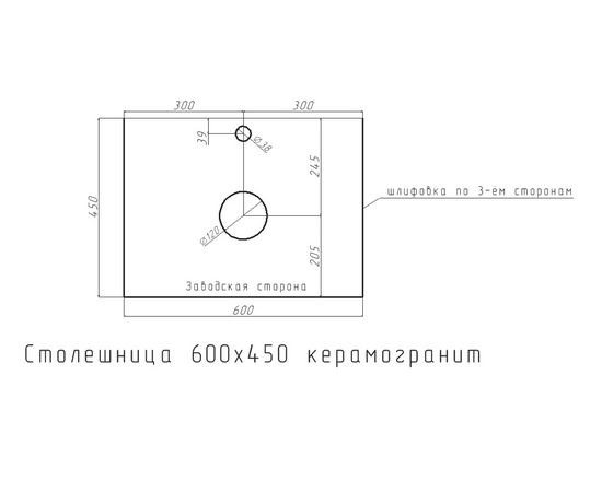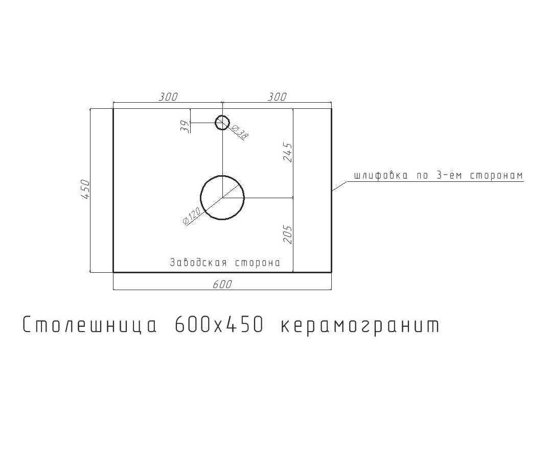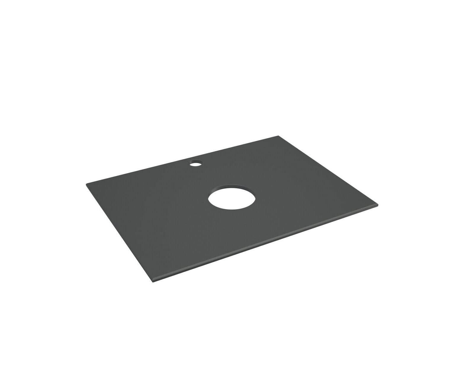 Столешница из керамогранита обеспечивает устойчивость к высокой влажности и перепадам температур, что исключает возможность появления плесени и грибка. Керамогранитный сплав обладает высокой прочностью и износостойкостью. Гладкая матовая поверхность и текстура, напоминающая цвет "темный графит" является универсальным решением практически для любого интерьера. Столешница оснащена отверстиями для смесителя и слива. Керамогранит состоит из натуральных компонентов, что исключает наличие вредных химических и токсических примесей