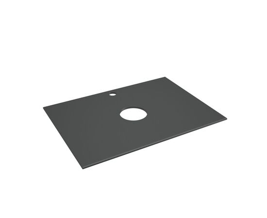 Столешница из керамогранита обеспечивает устойчивость к высокой влажности и перепадам температур, что исключает возможность появления плесени и грибка. Керамогранитный сплав обладает высокой прочностью и износостойкостью. Гладкая матовая поверхность и текстура, напоминающая цвет "темный графит" является универсальным решением практически для любого интерьера. Столешница оснащена отверстиями для смесителя и слива. Керамогранит состоит из натуральных компонентов, что исключает наличие вредных химических и токсических примесей