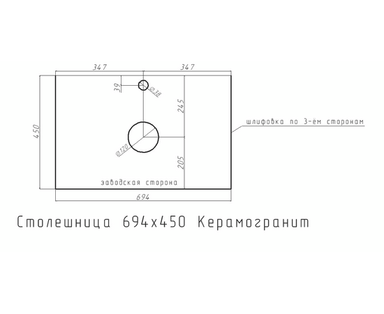 Столешница из керамогранита обеспечивает устойчивость к высокой влажности и перепадам температур, что исключает возможность появления плесени и грибка. Керамогранитный сплав обладает высокой прочностью и износостойкостью. Гладкая матовая поверхность и текстура, напоминающая цвет "темный графит" является универсальным решением практически для любого интерьера. Столешница оснащена отверстиями для смесителя и слива. Керамогранит состоит из натуральных компонентов, что исключает наличие вредных химических и токсических примесей
