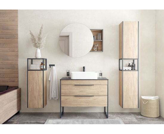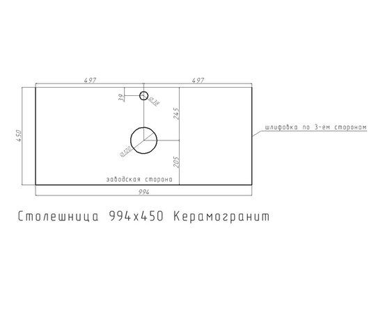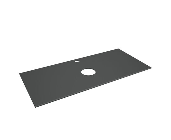 Столешница из керамогранита обеспечивает устойчивость к высокой влажности и перепадам температур, что исключает возможность появления плесени и грибка. Керамогранитный сплав обладает высокой прочностью и износостойкостью. Гладкая матовая поверхность и текстура, напоминающая цвет "темный графит" является универсальным решением практически для любого интерьера. Столешница оснащена отверстиями для смесителя и слива. Керамогранит состоит из натуральных компонентов, что исключает наличие вредных химических и токсических примесей