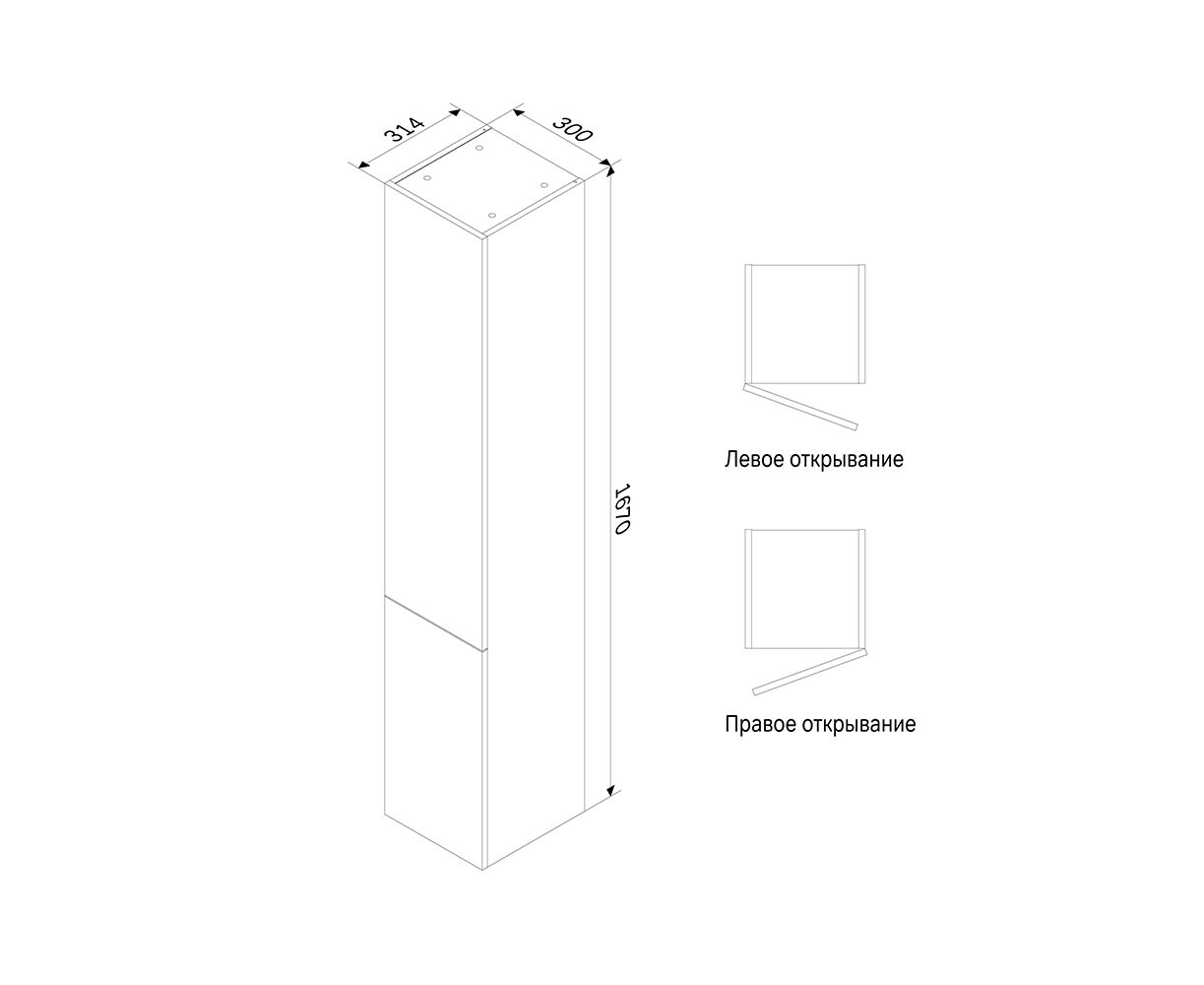 Характеристики Шкаф-колонна AM.PM GEM M90CHR0306WG подвесной правый 30 см двери push-to-open белый глянец