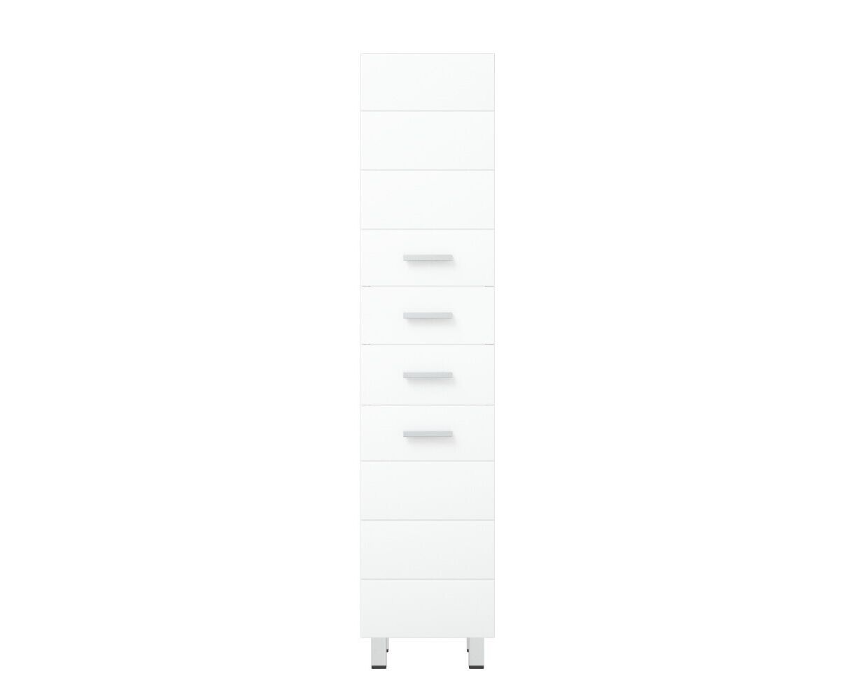 Коллекция "Денвер" - это вдохновление четкостью линий модернизма! Линейка выполнена из влагостойкого МДФ, покрытого белой глянцевой пленкой. Мебель комплектуется фурнитурой высокого качества, дверными петлями со встроенными доводчиками и удобными наклонными ручками. Линейная фрезеровка на фасадах придаст индивидуальность и задаст особый ритм Вашей ванной комнате. У пенала 2 распашные двери, позади которых находятся вкладные полки. По центру расположены 2 выдвижных ящика на шариковых направляющих. Высота ящиков - 110 мм. Все двери на петлях с доводчиками. Пенал является универсальным, то есть может быть установлен как правым, так и левым открыванием дверей, путем переворачивания. У пенала 4 металлические опоры. Фасады - МДФ с белой плёнкой, корпус - ЛДСП.