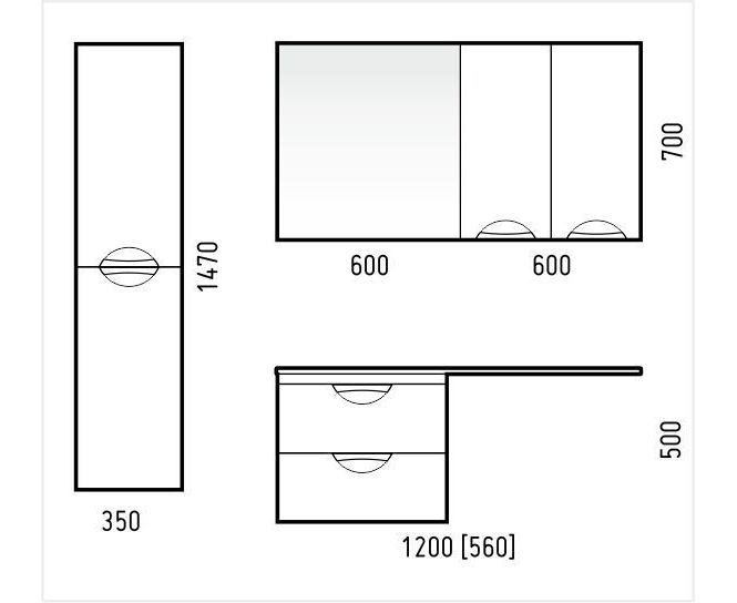 У подвесного пенала 2 распашные двери, позади дверей - вкладные полки. Все двери на петлях с доводчиками. Пенал является универсальным - может быть как правого, так и левого открывания путем его переворачивания. Фасады - плёнка ПВХ Белая.