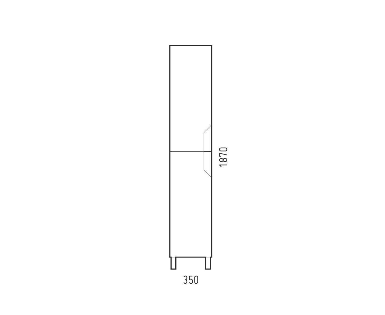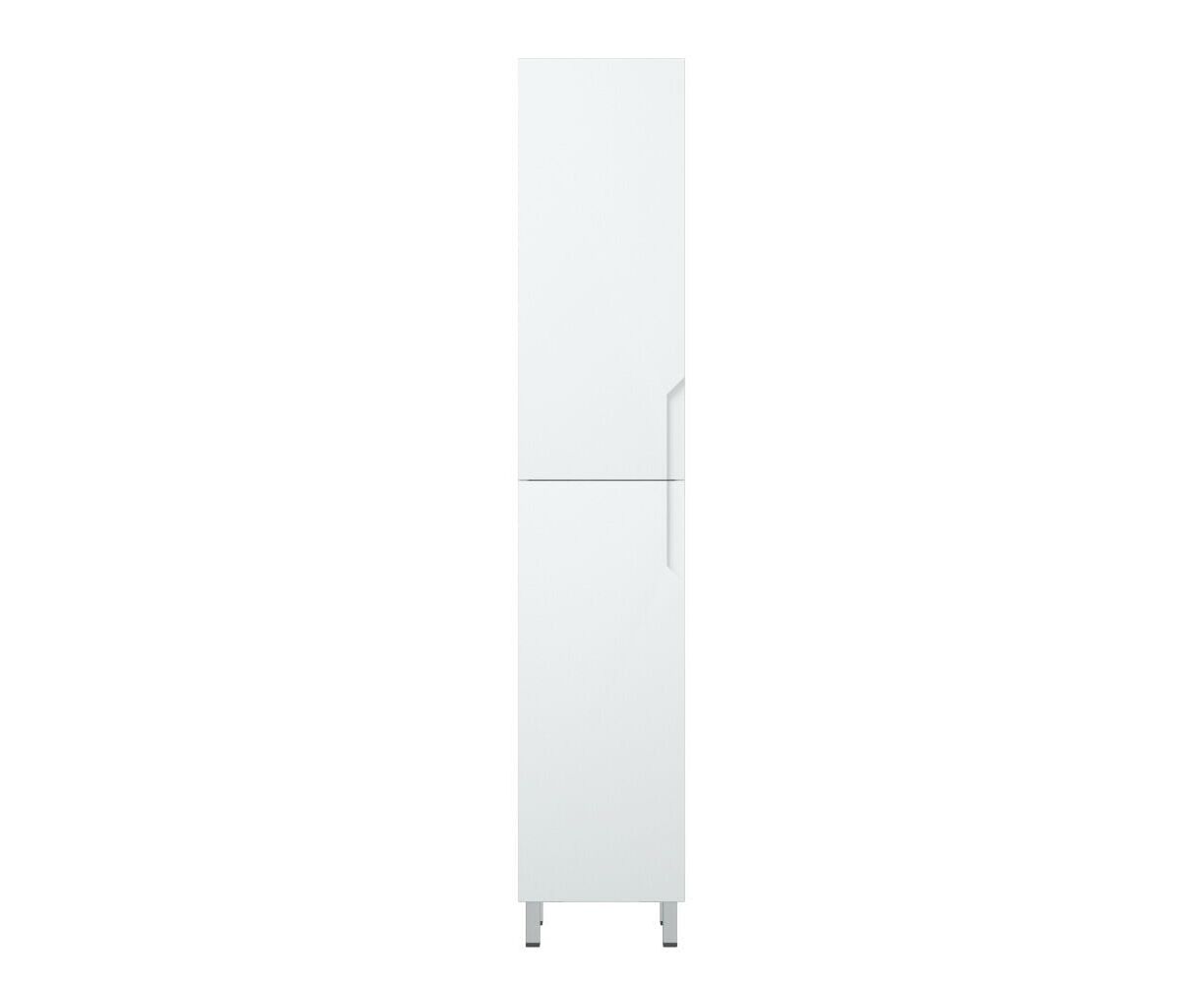 У пенала "Юта" 2 распашные двери, позади по две вкладные полки с возможностью регулировки по высоте. Двери без ручек - есть специально сделанная фрезеровка для удобного открывания. Пенал является универсальным, то есть может быть как правым, так и левым путем переворачивания. Все двери на петлях с доводчиками. У пенала 4 металлические опоры. Фасады и боковины - эмаль белая глянец.
