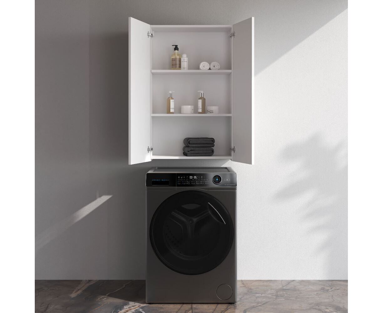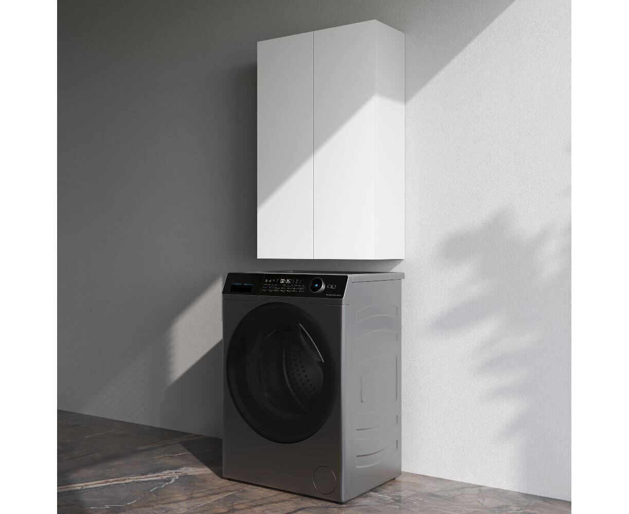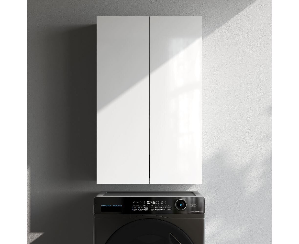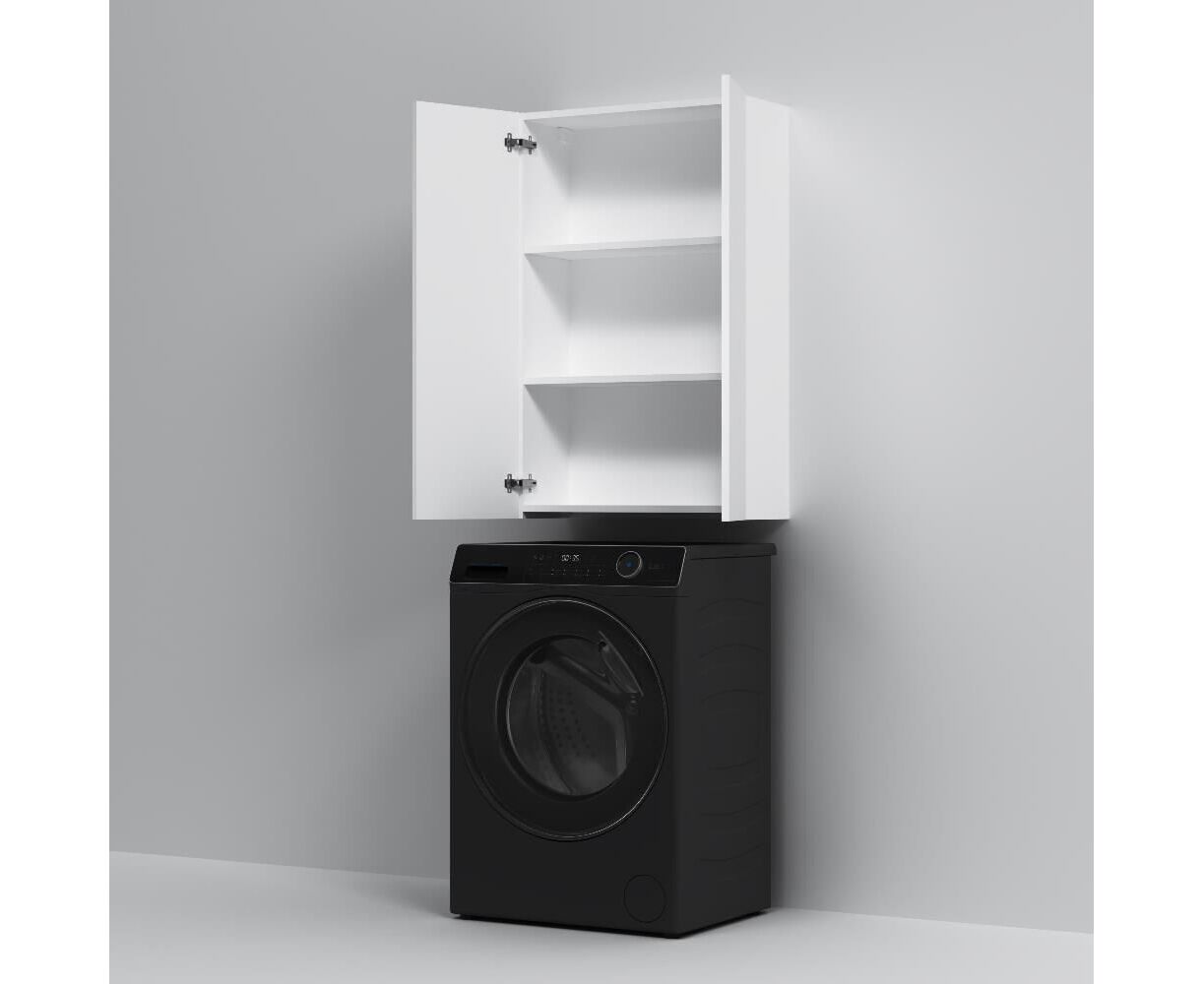 Преимущества и функции: вместительный распашной шкаф поможет эргономично обустроить зону хранения и сэкономить место. Навесной монтаж - подходит для установки над стиральной машиной. Открытая ниша - организация хранения бытовой химии, полотенец и аксессуаров первой необходимости в быстром доступе. Петли с доводчиками - обеспечивают мягкое и бесшумное закрывание.