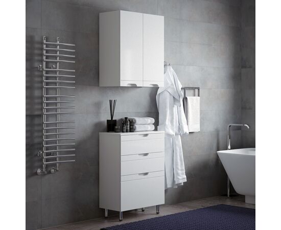 Коллекция мебели для ванных комнат "ЛЕЯ" создана для тех, кто ценит простоту форм, сочетание округлых и прямых линий, удобство эксплуатации. У мебели коллекции «ЛЕЯ» корпус выполнен из ЛДСП, фасады - из влагостойкой плиты МДФ, покрытие - пленка ПВХ. У шкафа Лея 55 две распашные двери, позади две регулируемые по высоте полки. Каждая дверь на одной петле с доводчиком, и на одной - простой. Фурнитура с лицевой стороны фасадов отсутствует, вместо нее предусмотрены интегрированные ручки с декоративной полосой тонкой фрезеровки.