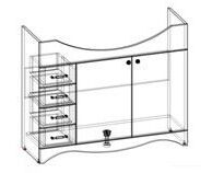 Тумба оснащена четырьмя выдвижными ящиками слева и двумя дверцами. Фасады - с фрезеровкой.