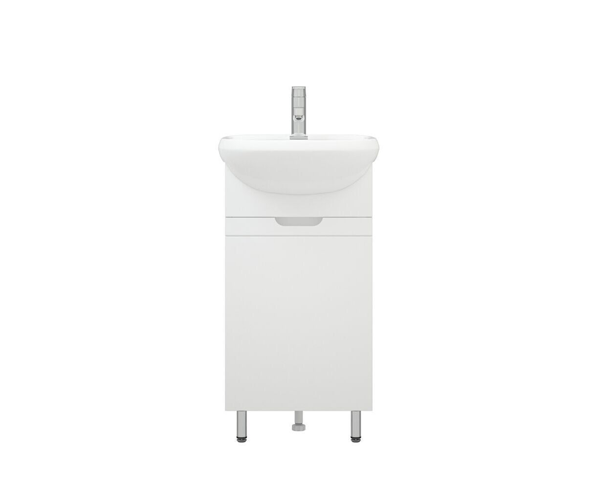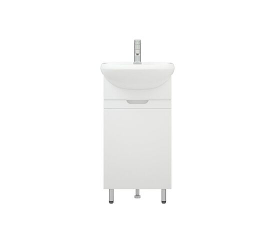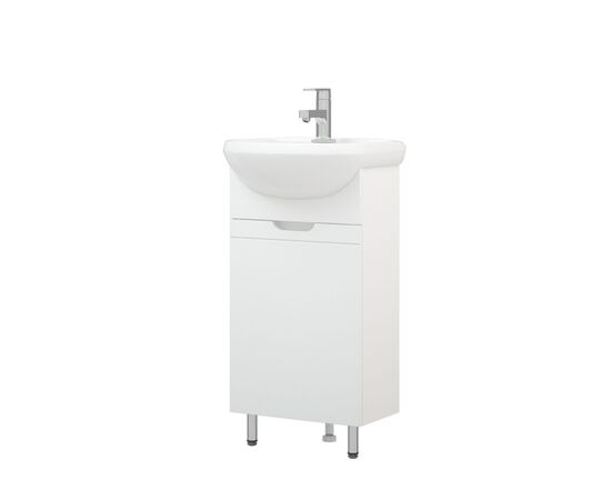 Коллекция мебели для ванных комнат "ЛЕЯ" создана для тех, кто ценит простоту форм, сочетание округлых и прямых линий, удобство эксплуатации. У мебели коллекции «ЛЕЯ» корпус выполнен из ЛДСП, фасады - из влагостойкой плиты МДФ, покрытие - пленка ПВХ. У тумбы одна распашная дверь, позади полка. Дверь на одной петле с доводчиком, одна - простая. Фурнитура с лицевой стороны фасадов отсутствует, вместо нее предусмотрены интегрированные ручки с декоративной полосой тонкой фрезеровки. В комплектацию входят две металлические опоры и одна пластиковая