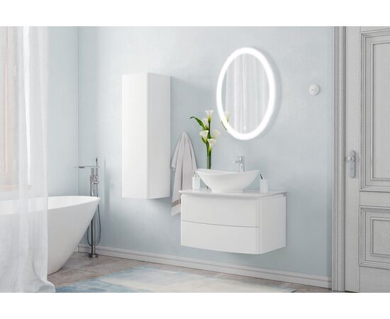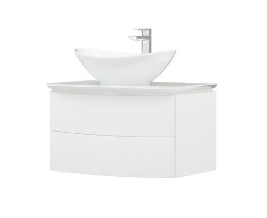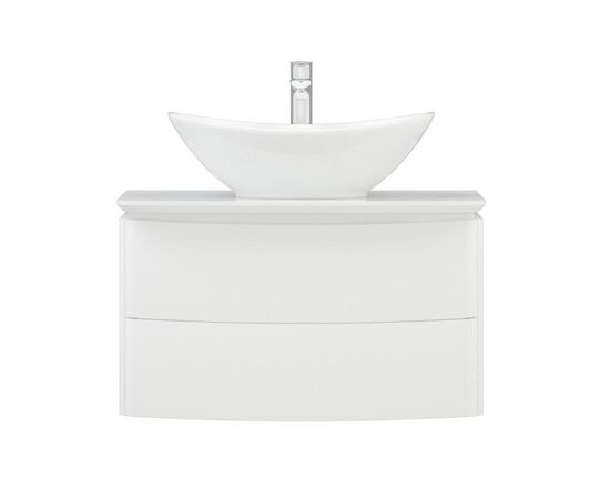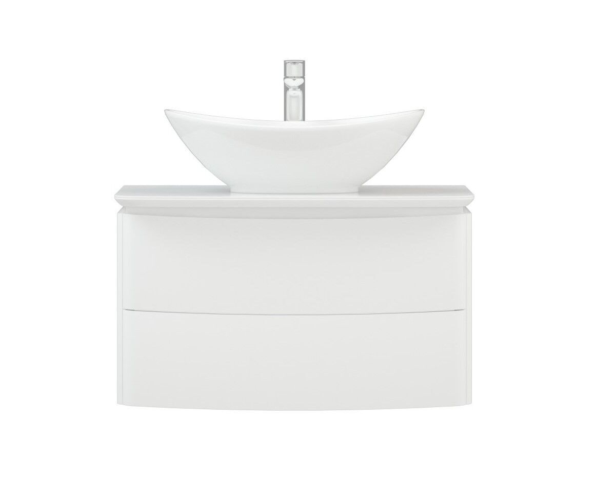 Тумба оснащена 2 выдвижными ящиками размером 100 см на направляющих "push to open". Для открывания нужно нажать на фасад ящика. Сверху на крышке расположена стеклянная крашенная столешница, в которой находятся вырезы для установки раковин в столешнице. Коромысло, фасады, крышка - МДФ в плёнке, корпус - ЛДСП. Имеются подвесы для крепления к стене. Столешница тумбы изготовлена из закаленного стекла толщиной 4 мм. Раковина может быть выбрана на любой вкус.