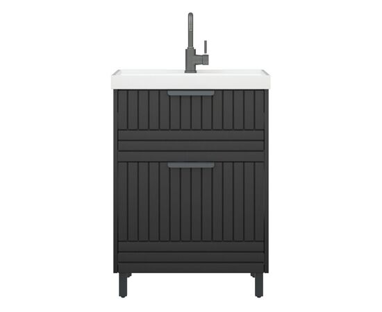 У тумбы коллекции "Терра" 2 выдвижных ящика. Направляющие с доводчиками. Фасад и корпус выполнены из влагостойкой плиты МДФ. В комплекте 4 металлические опоры. Ручки и опоры выполнены из металла цвета "Черный муар".