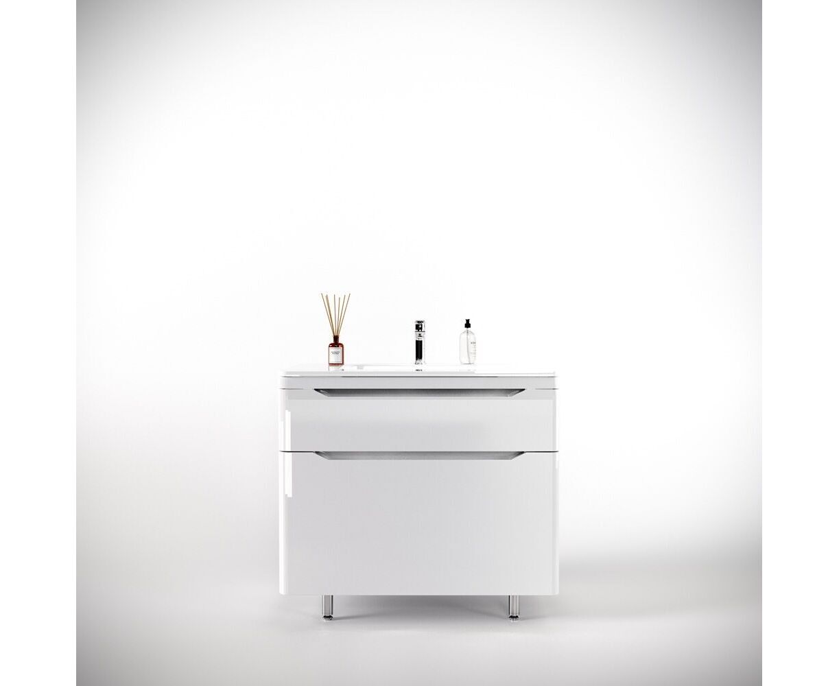 Тумба напольная Style Line Марелла 90 2 ящика Люкс антискрейтч белый глянец PLUS
