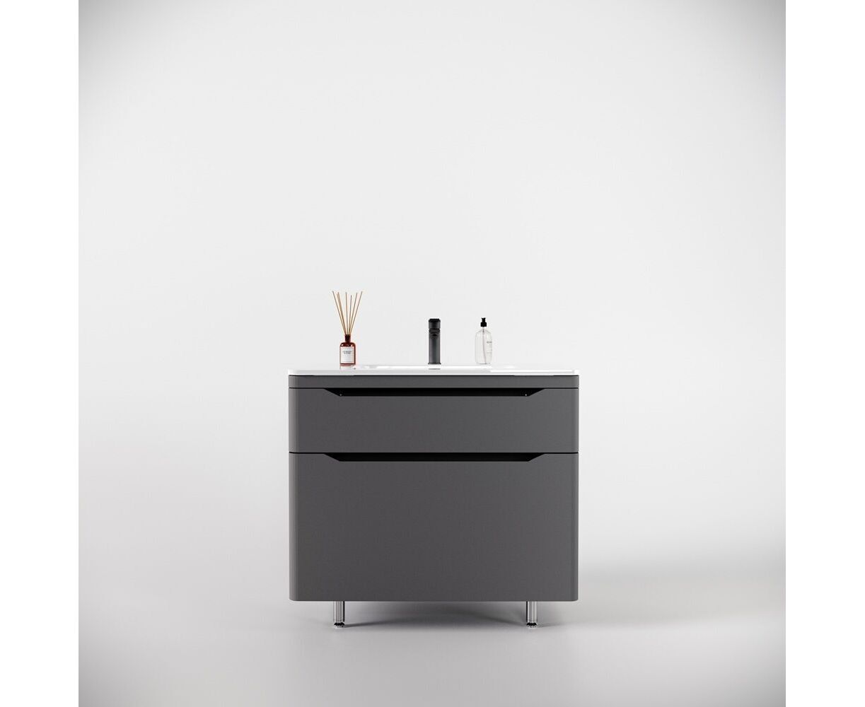 Тумба напольная "Марелла 90" - это стильное и современное решение для ванной комнаты, которое сочетает в себе высокое качество, функциональность и элегантный дизайн. Выполненная в сером цвете, она придаёт помещению свежий и светлый вид, визуально расширяя пространство. снащена двумя просторными ящиками, которые удобно организуют хранение ванных принадлежностей, косметики и других аксессуаров. Ящики легко открываются и закрываются благодаря качественным направляющим. Антискрейтч серое покрытие делает тумбу не только привлекательной, но и защищает её поверхность от царапин и мелких повреждений. Это упрощает уход за мебелью и поддержание её в идеальном состоянии. Лаконичные линии и гладкая поверхность создают современный и стильный вид, легко вписывающийся в различные интерьерные стили.