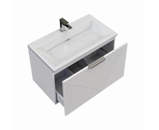 Материалы: rорпус и фасады выполнены из влагостойкого МДФ, покрытого высококачественной матовой краской. Это гарантирует устойчивость к влаге и долговечность при ежедневном использовании в условиях повышенной влажности.