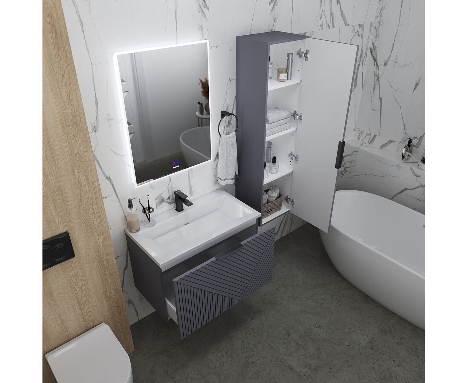 Тумба подвесная Grossman БЛИСС-80 см с 1 ящиком графит матовая