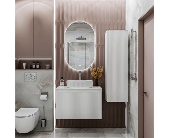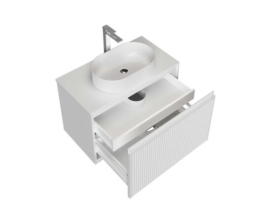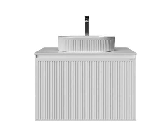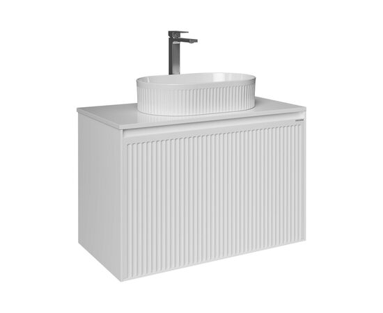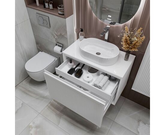 Подвесная тумба “КРИСТАЛЛ” 80 см с 1 ящиком, белый глянец - стильное и функциональное решение для современной ванной комнаты. Корпус и фасады выполнены из прочного МДФ, окрашенного в белый цвет с глянцевым эффектом. Элегантный фасад с вертикальным рифлением придаёт изделию изысканный внешний вид. Безручечный дизайн и скрытые направляющие с доводчиком обеспечивают комфортное и бесшумное использование.