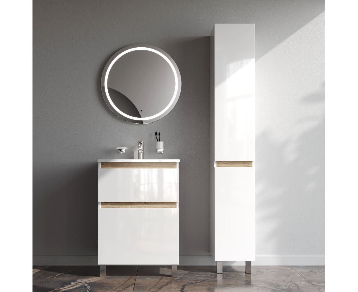Размер тумбы (Ш/Г/В): 590x450x850. Цвет тумбы - белый глянец.