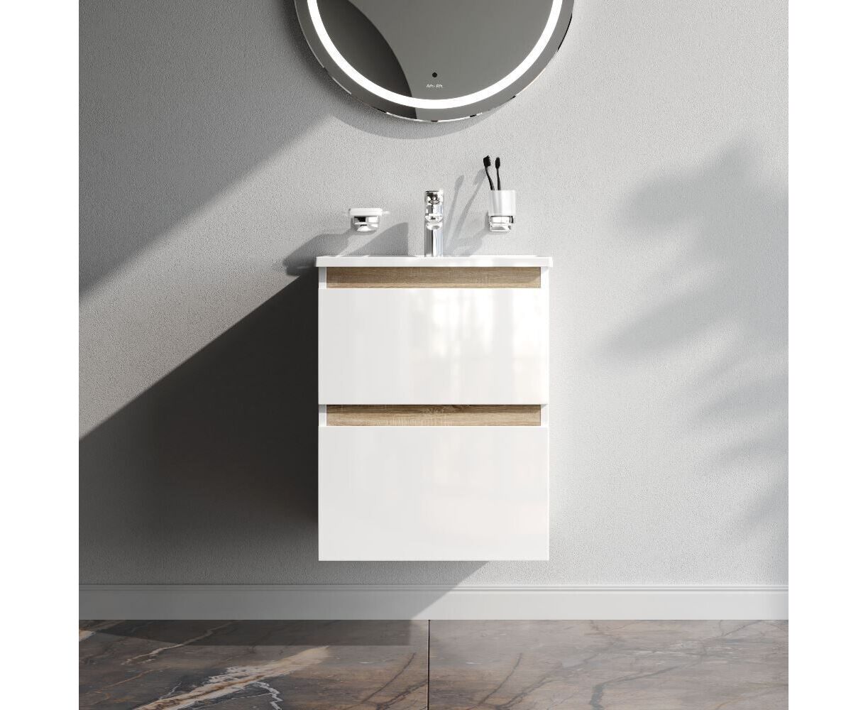 База с раковиной подвесная AM.PM X-Joy M85A-FHX0502WG-WCC0502WG 50 см 2 ящика белый глянец