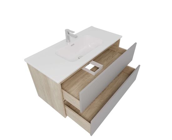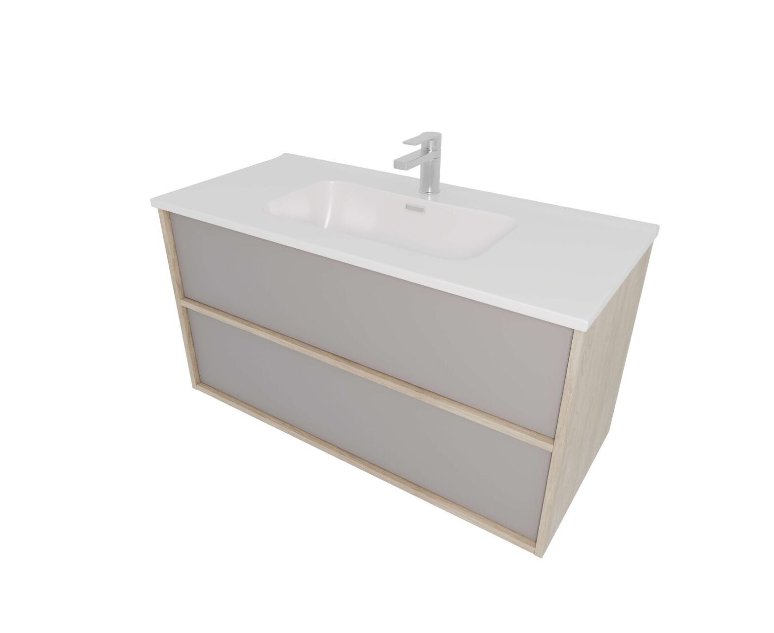 Тумба Aquatek ЛИБРА с раковиной 100 см 2 ящика с системой push-to-open корпус деревоцвет фасадов серый туман