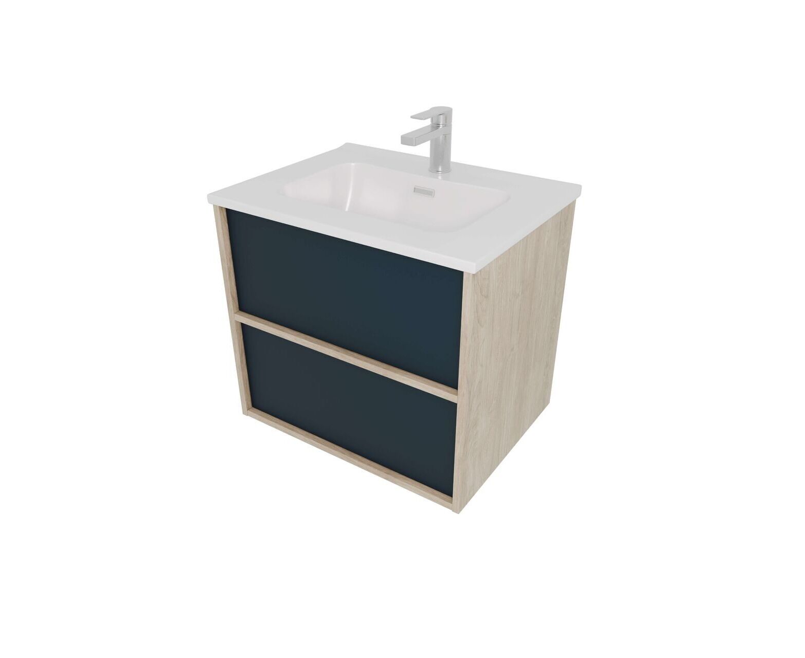 Тумба Aquatek ЛИБРА с раковиной 60 см 2 ящика с системой push-to-open корпус деревоцвет фасадов серый матовый