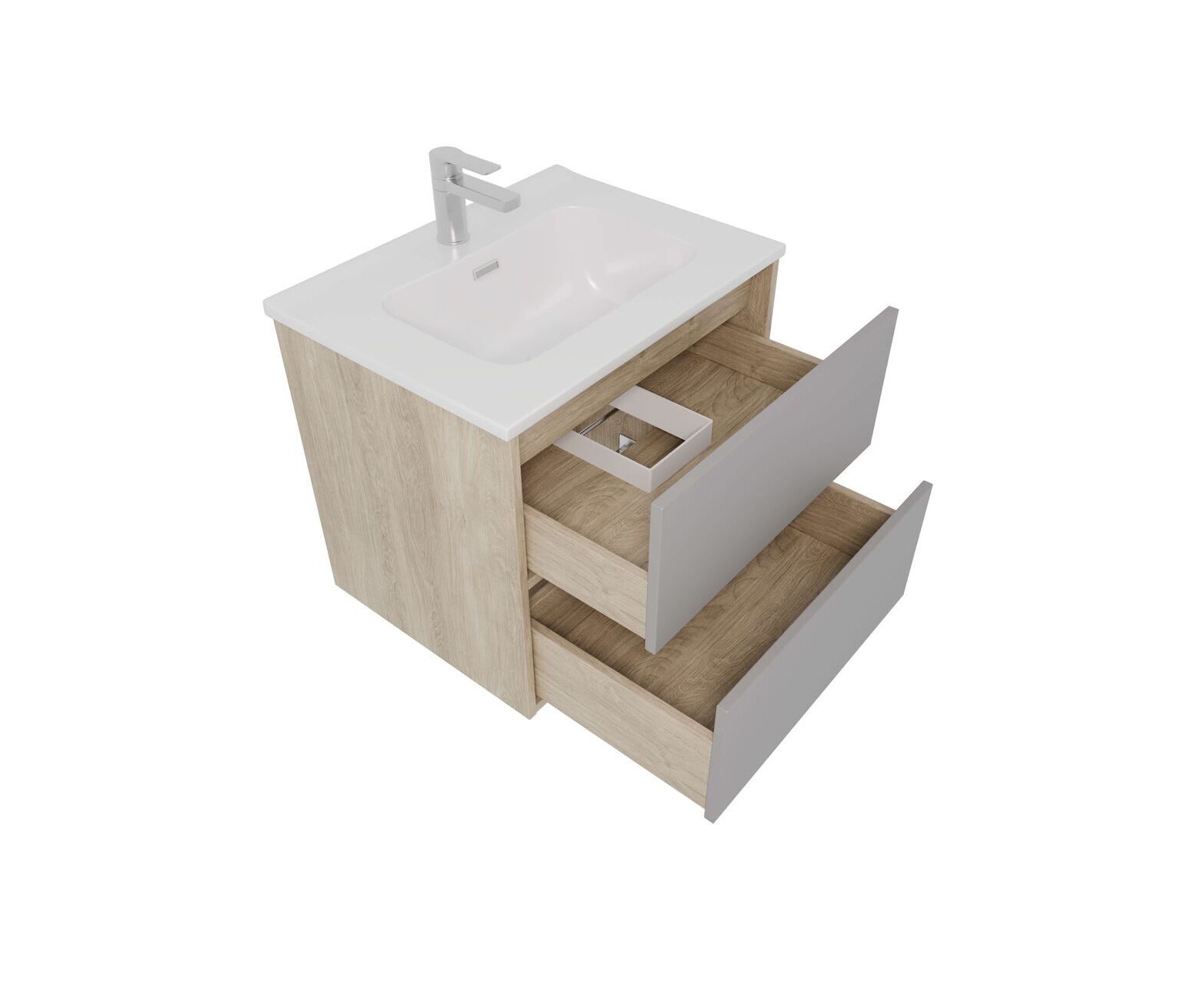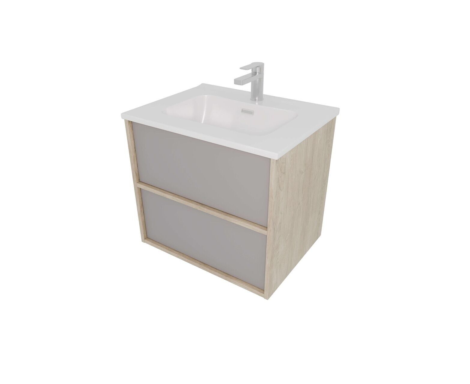 Тумба Aquatek ЛИБРА с раковиной 60 см 2 ящика с системой push-to-open корпус деревоцвет фасадов серый туман