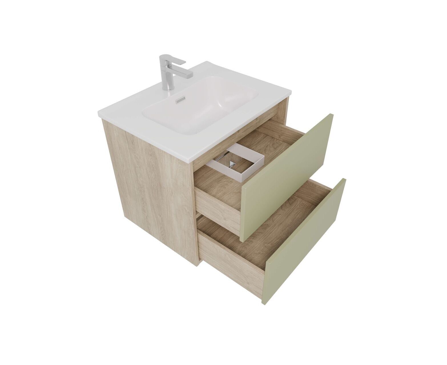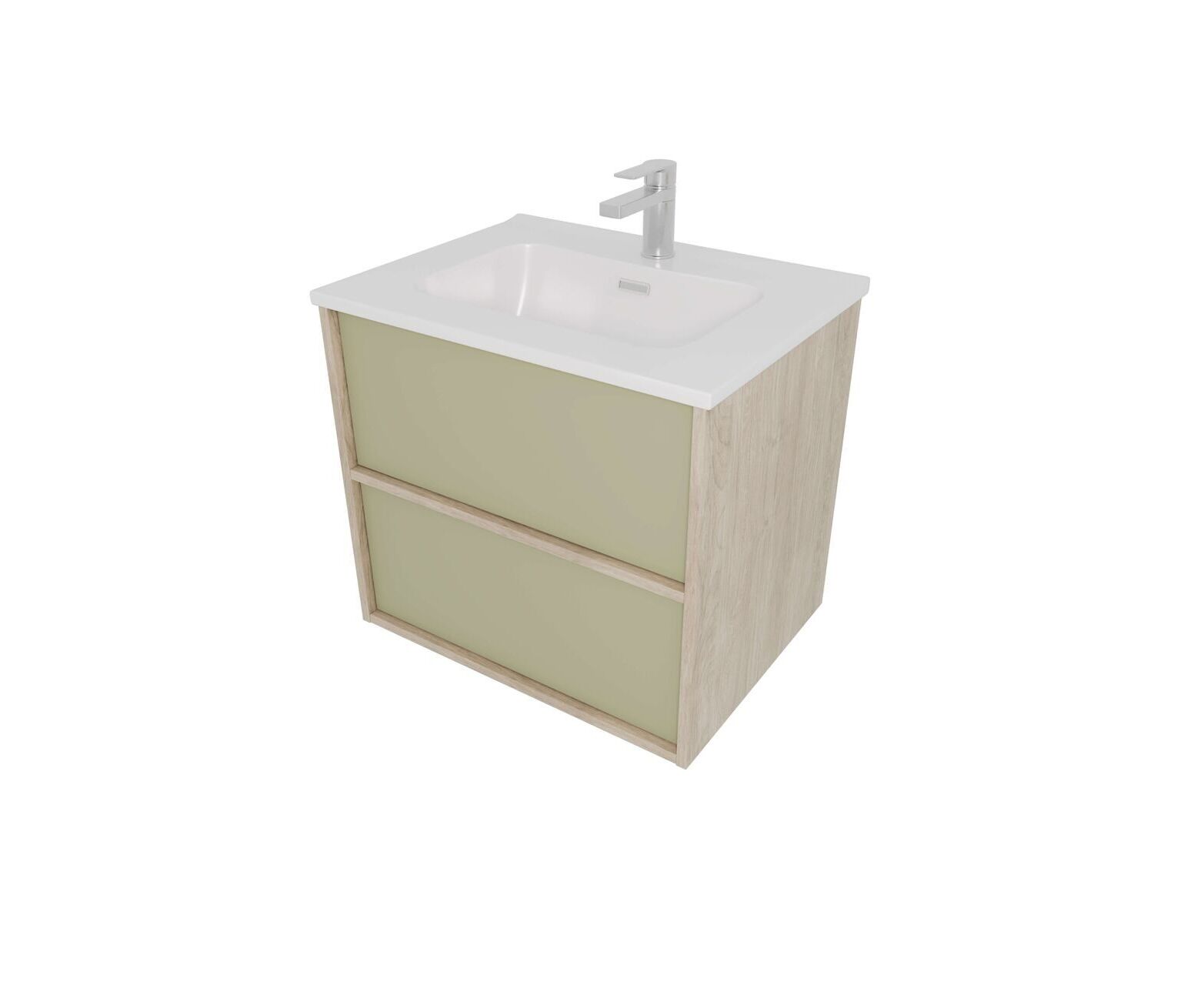 Тумба Aquatek ЛИБРА с раковиной 60 см 2 ящика с системой push-to-open корпус деревоцвет фасадов шалфей зеленый