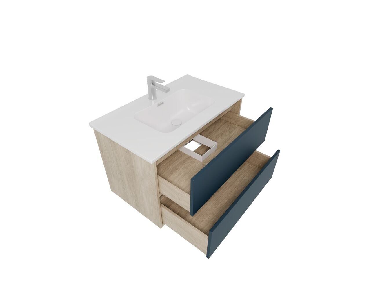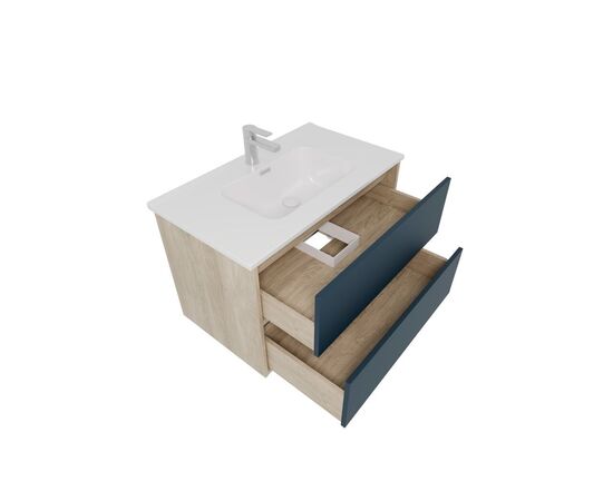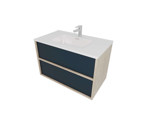 Тумба Aquatek ЛИБРА с раковиной 80 см 2 ящика с системой push-to-open корпус деревоцвет фасадов серый матовый