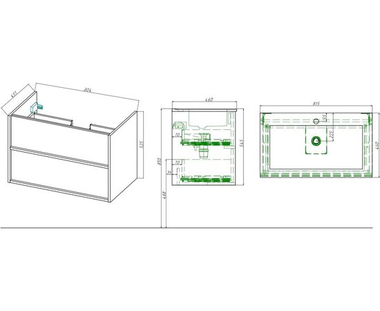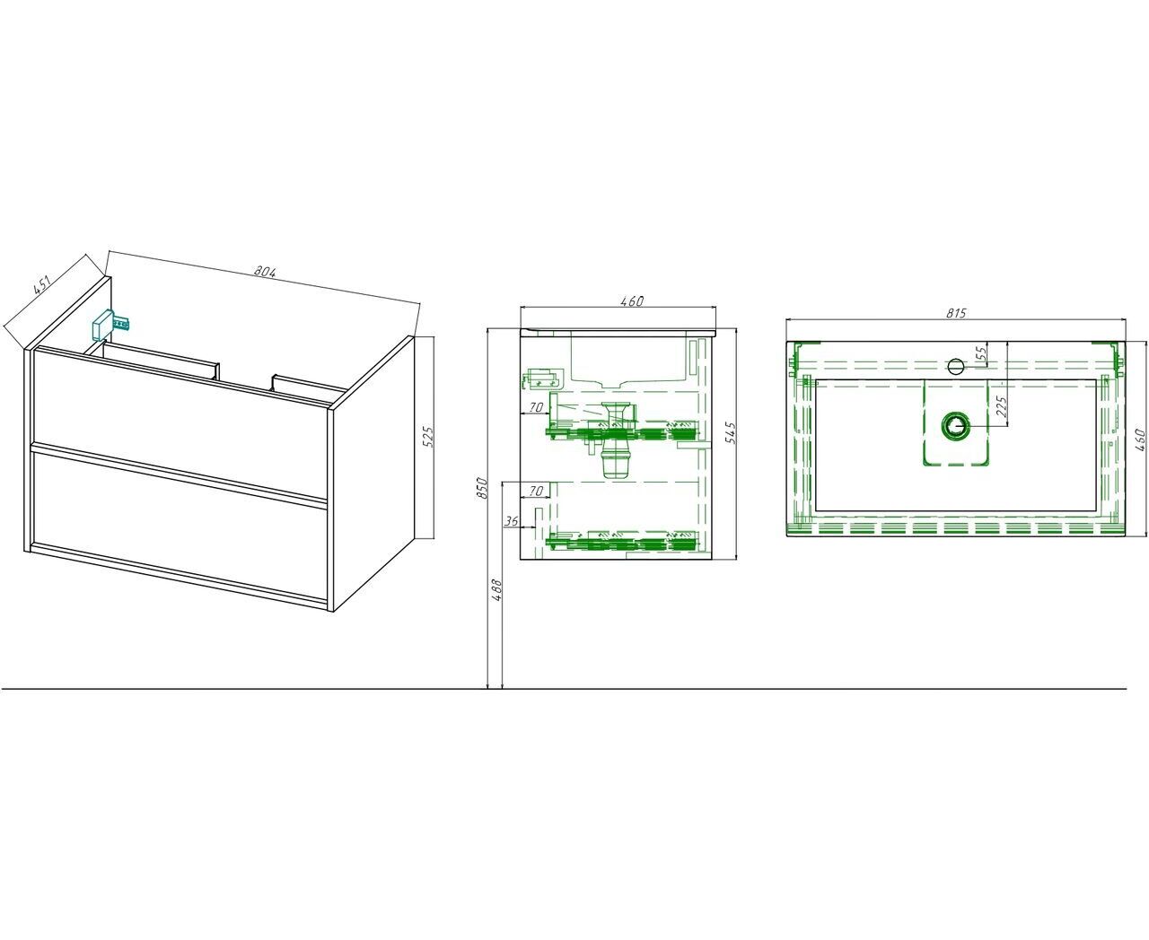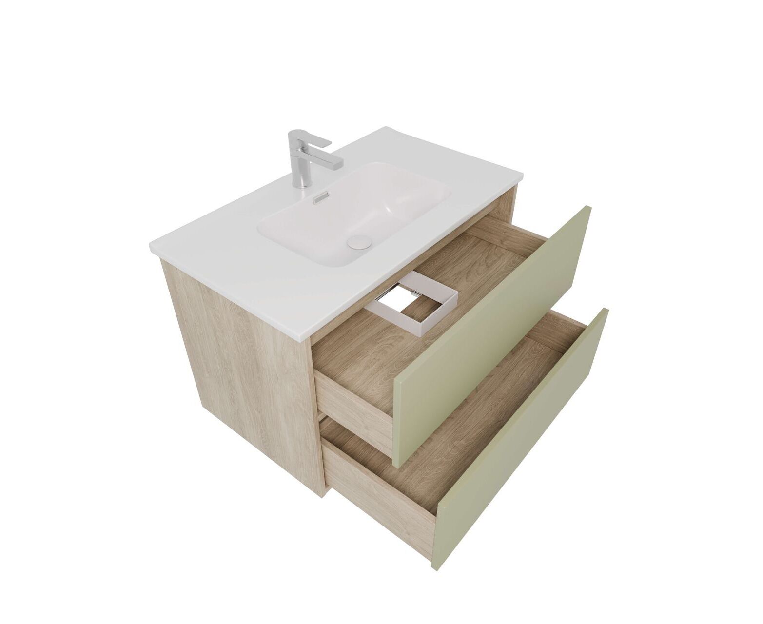 Тумба Aquatek ЛИБРА с раковиной 80 см 2 ящика с системой push-to-open корпус деревоцвет фасадов шалфей зеленый