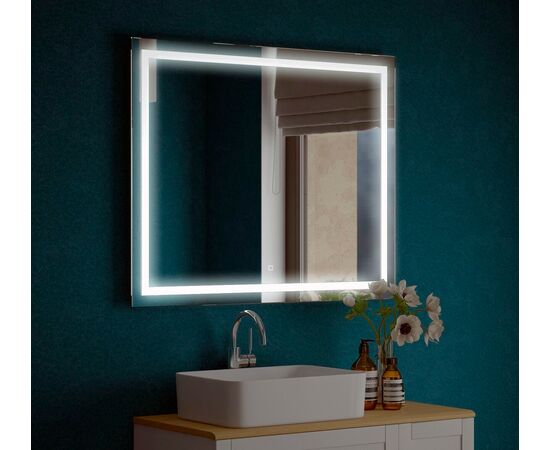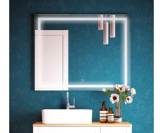 Зеркало оснащено LED-подсветкой и сенсорным выключателем с регулировкой яркости. У зеркала "Барго 1200*800" ширина 1200 мм, а высота 800 мм. С отступом 35 мм от края, по всему периметру идёт область пескоструя шириной в 25 мм. Подсветка этой области осуществляется при помощи нажатия кнопки. Существует возможность регулировки освещенности (делать подсветку ярче или темнее). LED-подсветка, сенсорный выключатель с регулировкой яркости. Класс защиты: IP20. Класс энергетической эффективности: A++. Серебряное зеркало, стекло высшего качества M1. AC/DC трансформатор.