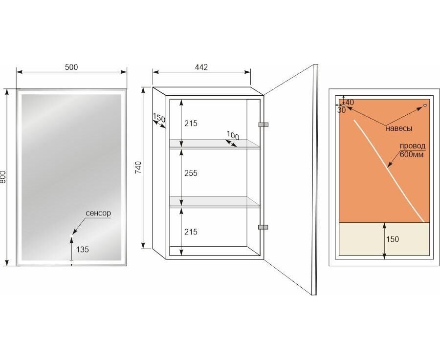 Зеркало-шкаф Style Line Квартет 50х80 левое с подсветкой сенсор на зеркале