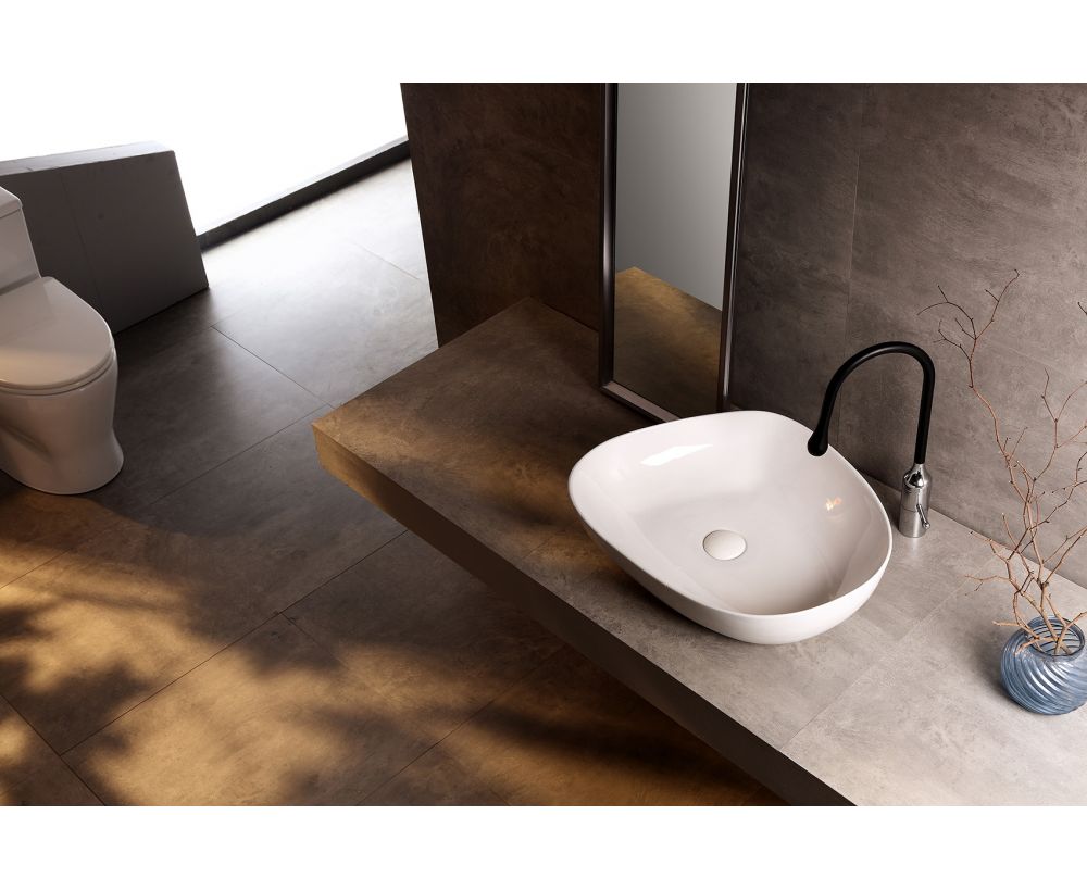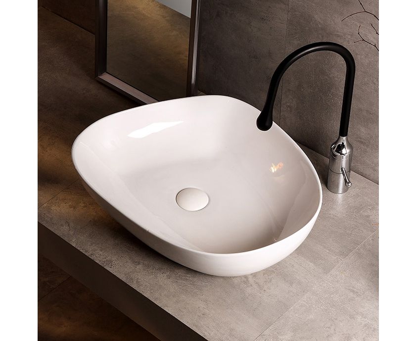 Форма: нестандартная. Материал: санфарфор. Цвет: белый. Установка: накладная. Донный клапан: в комплекте.