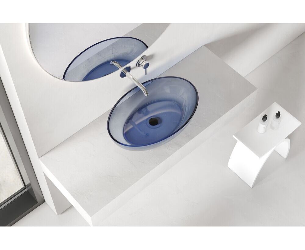 Раковина накладная прозрачная ABBER Kristall AT2801Saphir синяя
