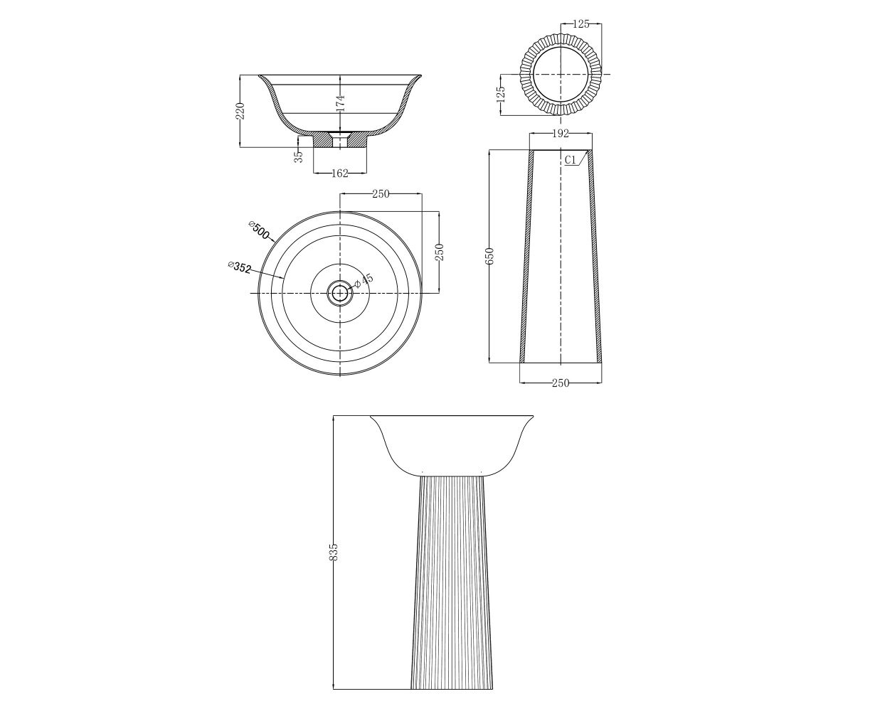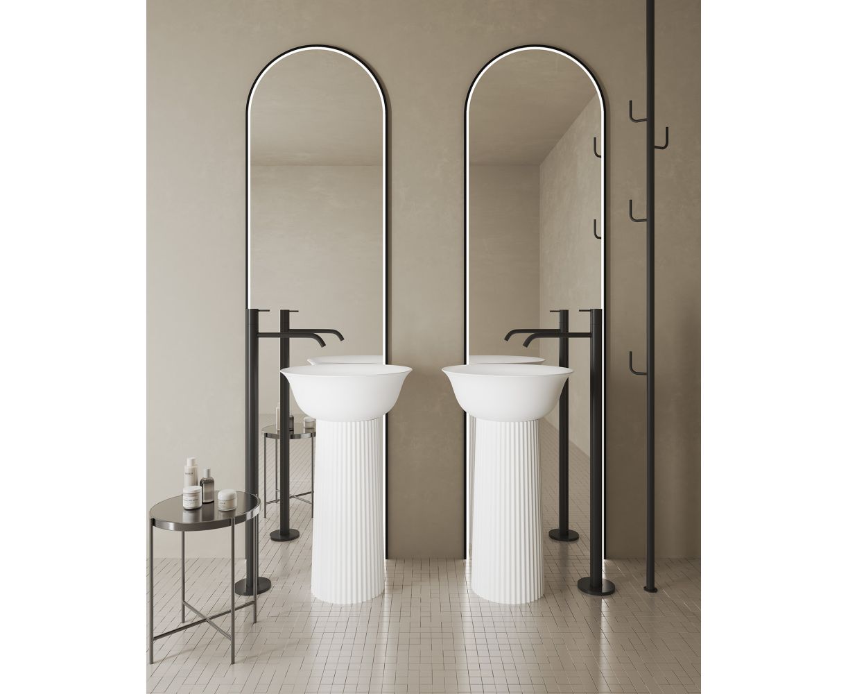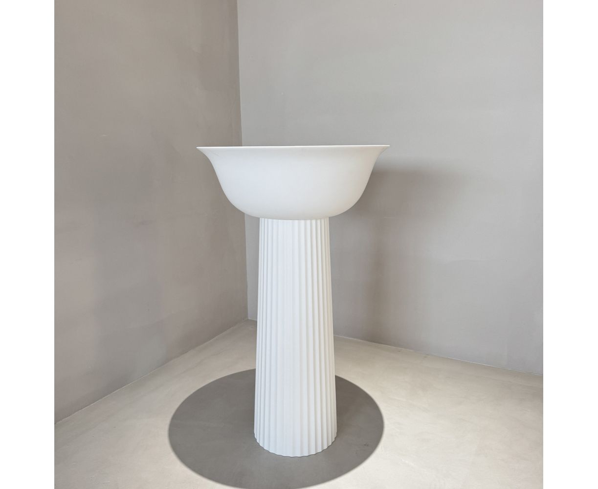 Форма: круглая. Материал: санфарфор. Цвет: белый матовый. Установка: отдельностоящая. Донный клапан: в комплекте.