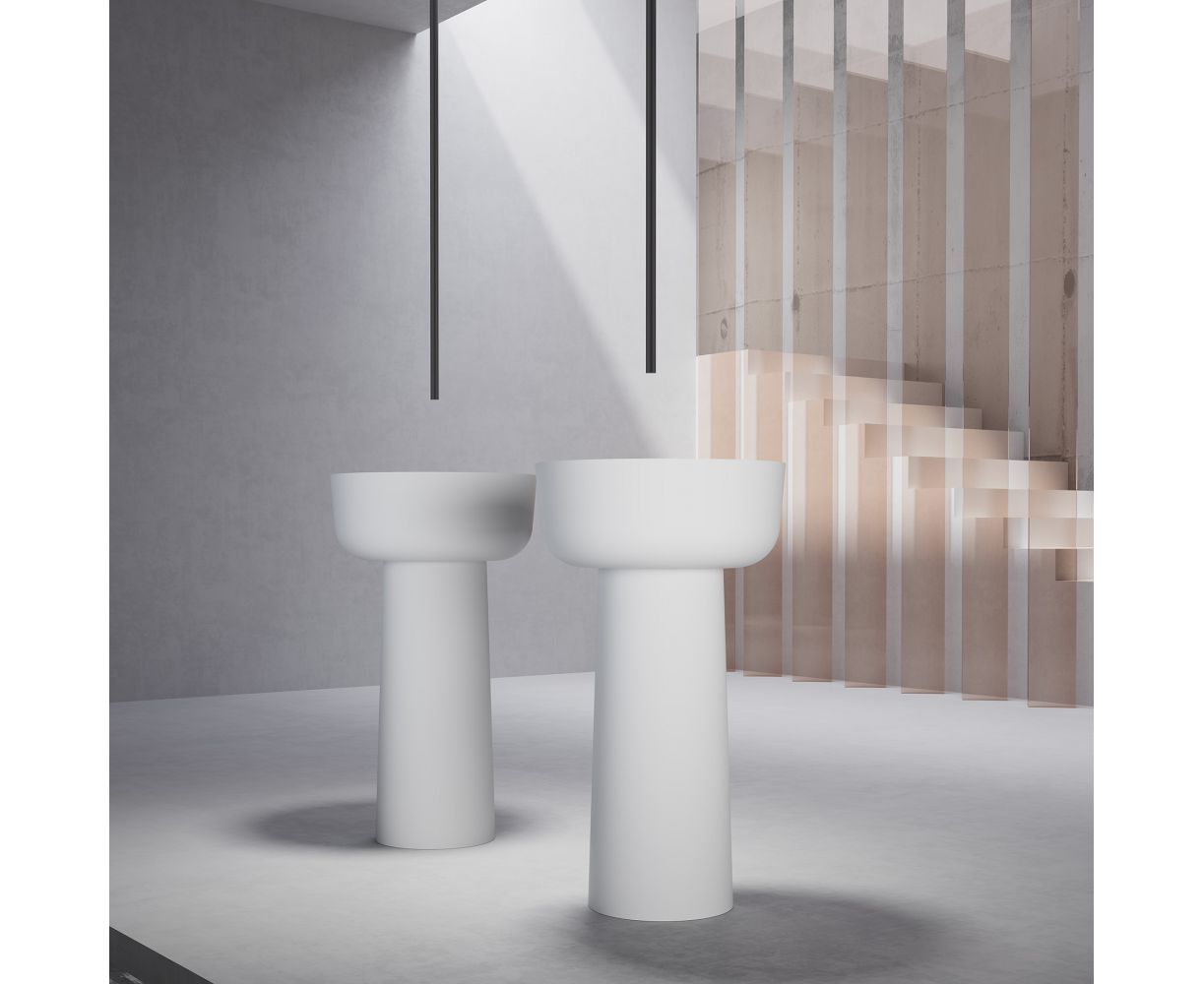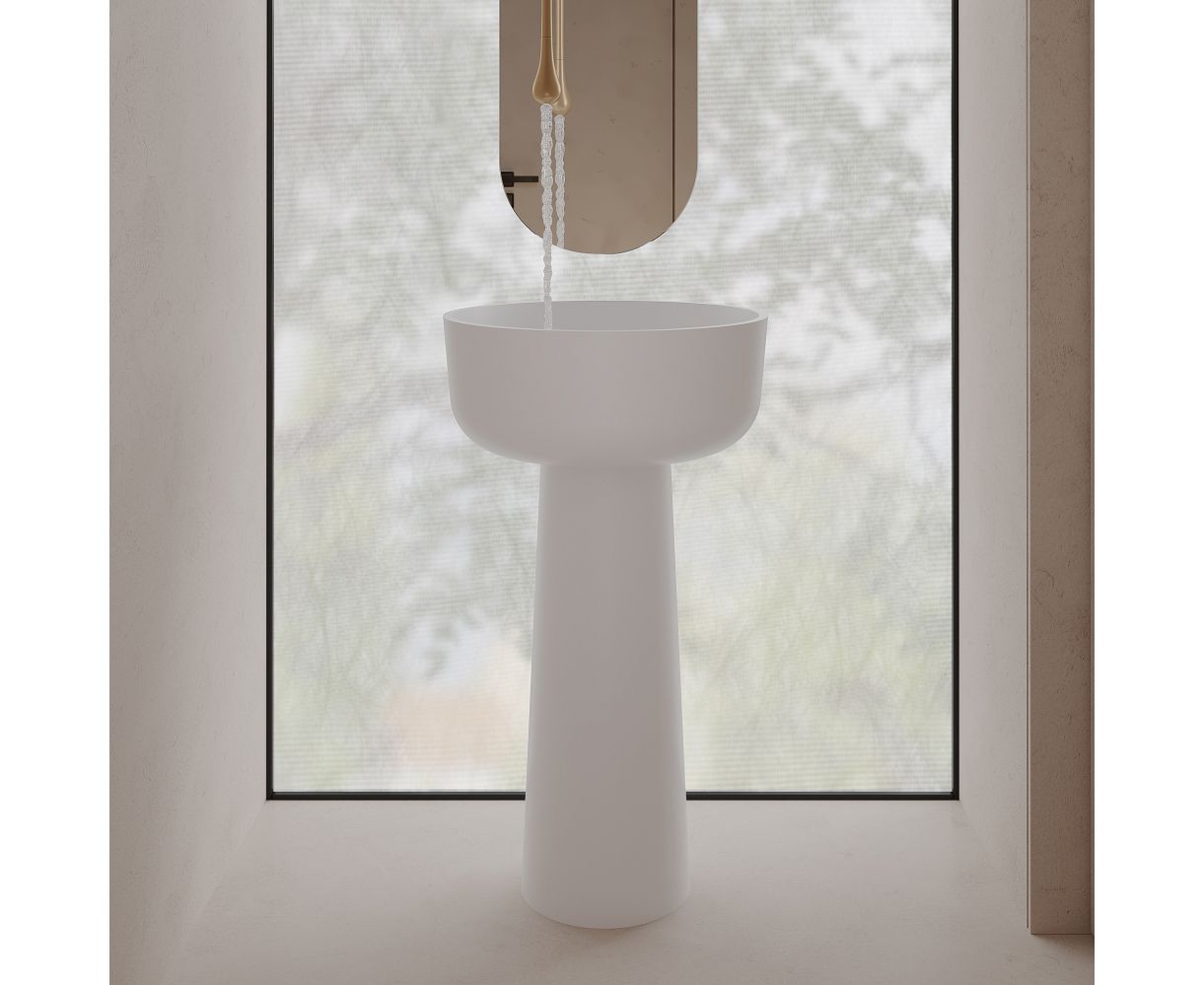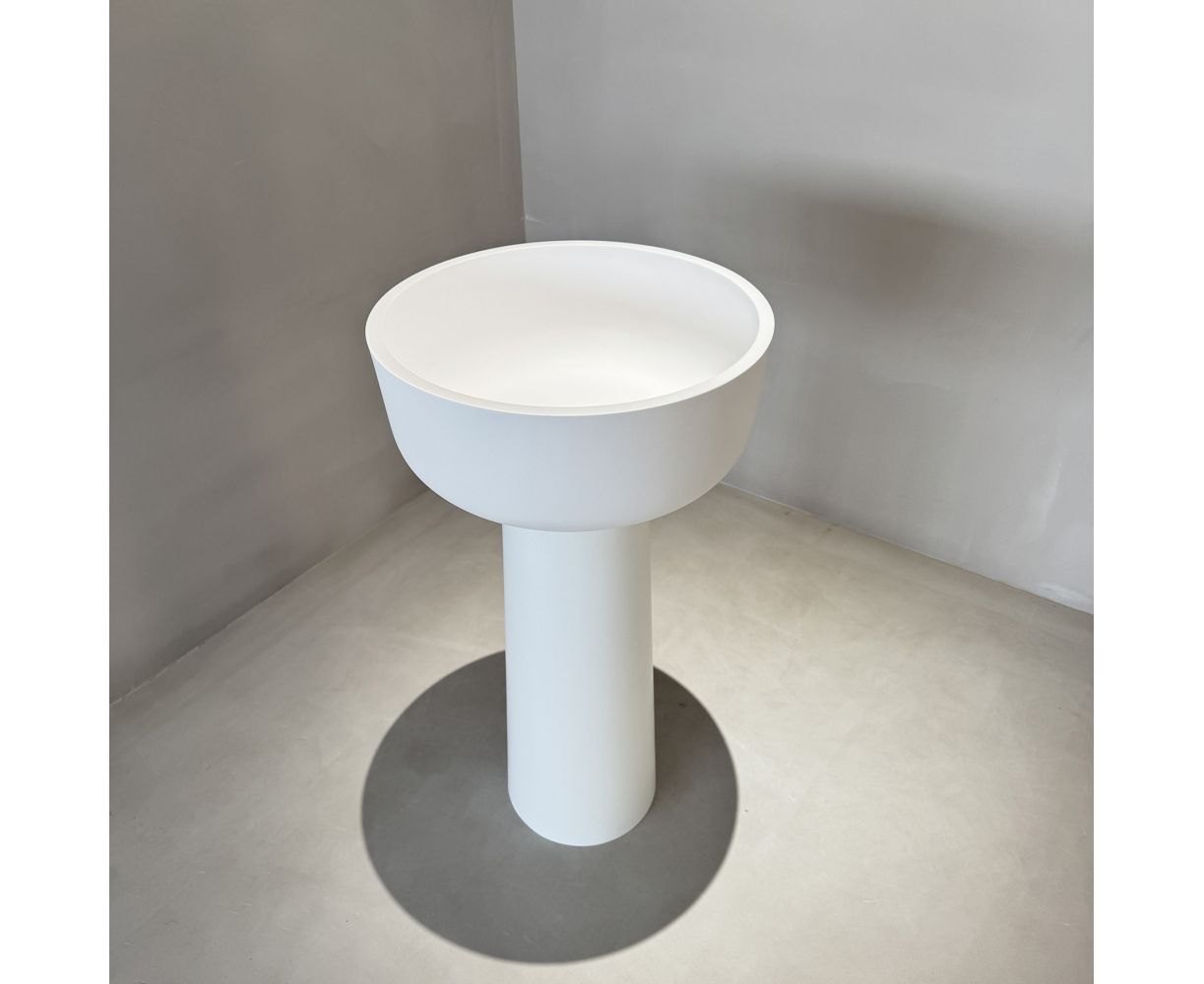Форма: круглая. Материал: санфарфор. Цвет: белый матовый. Установка: отдельностоящая. Донный клапан: в комплекте.