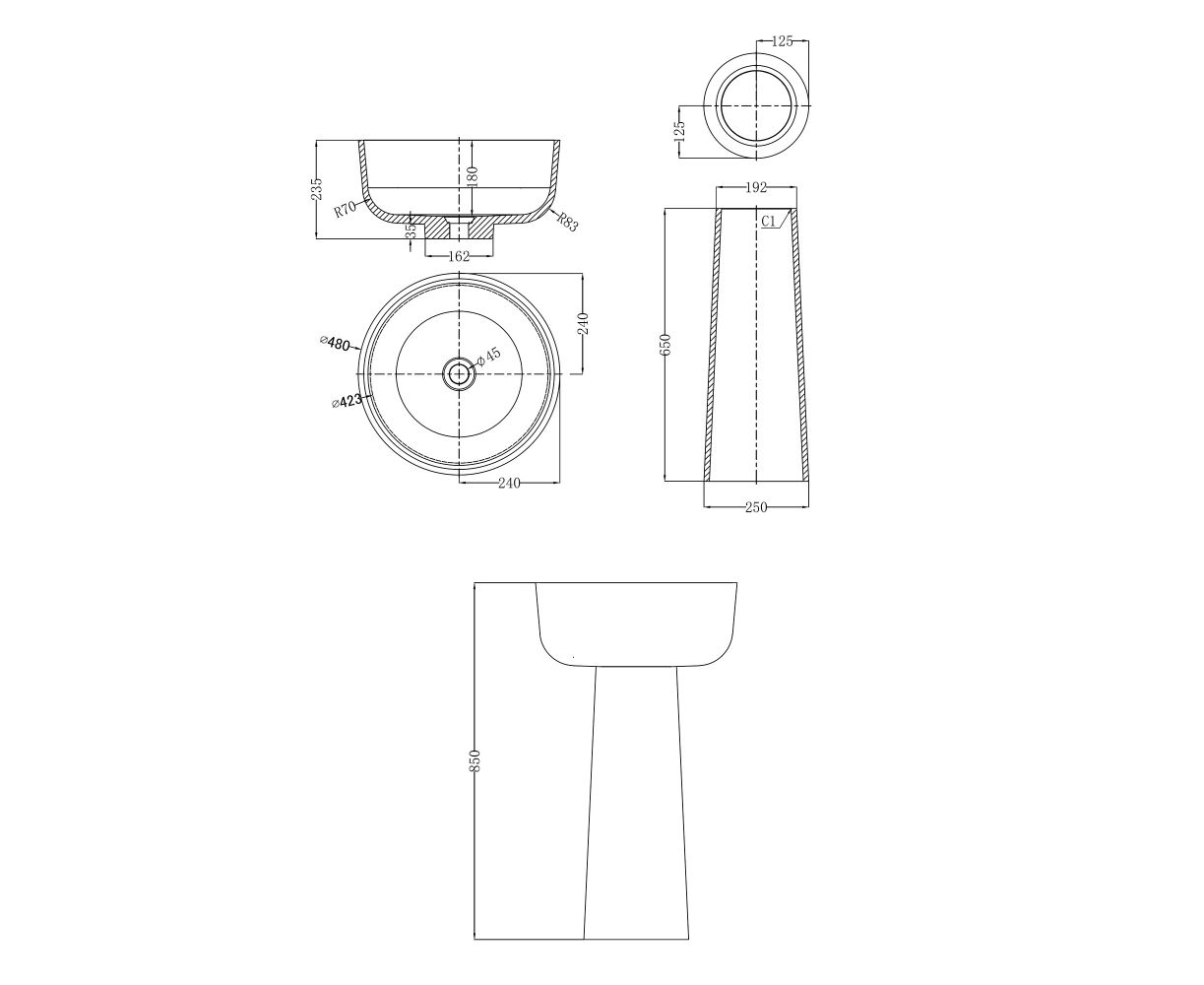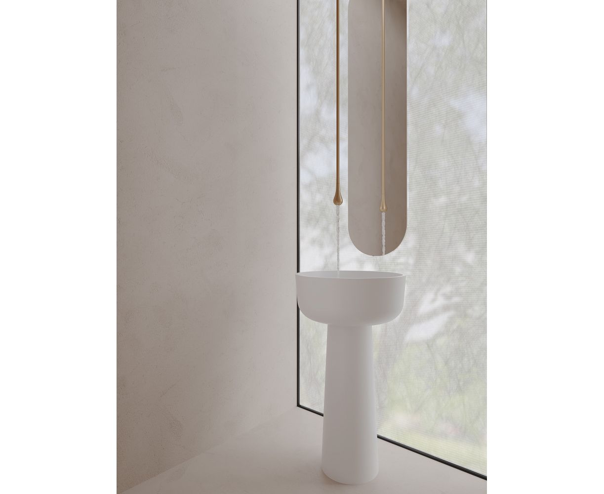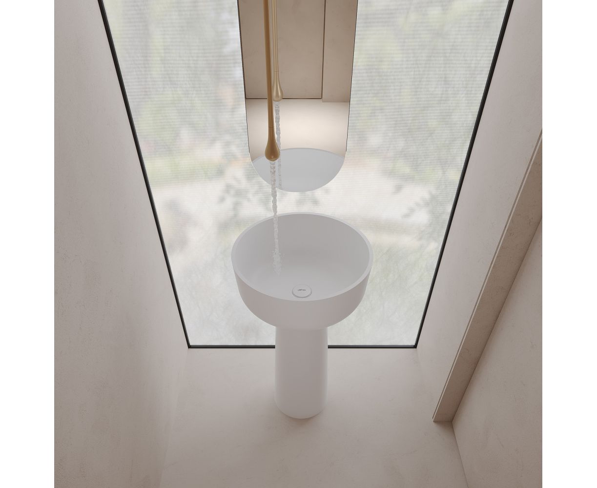 Форма: круглая. Материал: санфарфор. Цвет: белый матовый. Установка: отдельностоящая. Донный клапан: в комплекте.