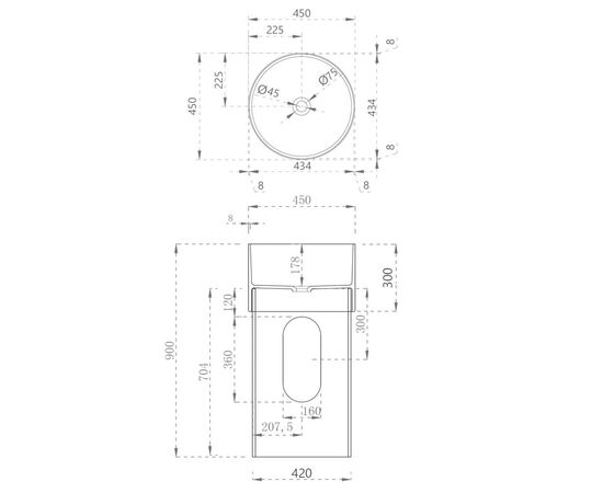 Донный клапан: приобретается отдельно. Отверстие под смеситель: нет. Отверстие под перелив: нет. Пьедестал: нет. Двойная раковина: нет.