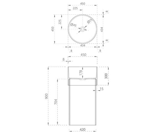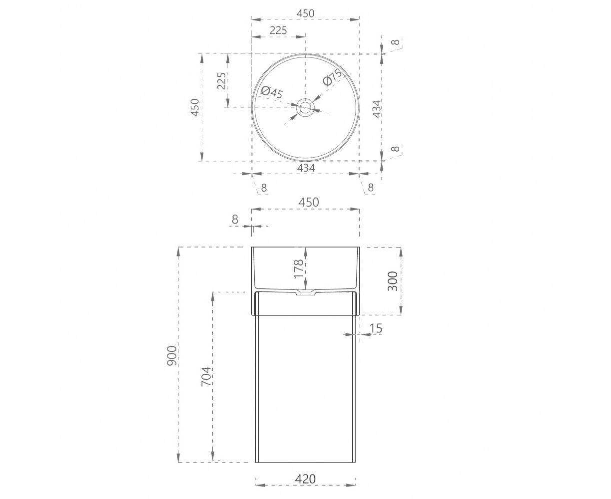 БрендAbber Тип раковиныНапольная Ширина, см45 Глубина, см45 Высота, см90 ФормаКруглая МатериалПолиэфирная смола СтранаГермания Гарантия5 лет